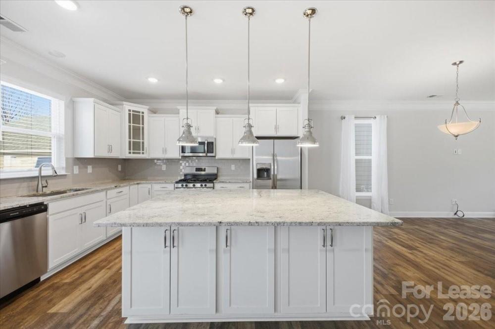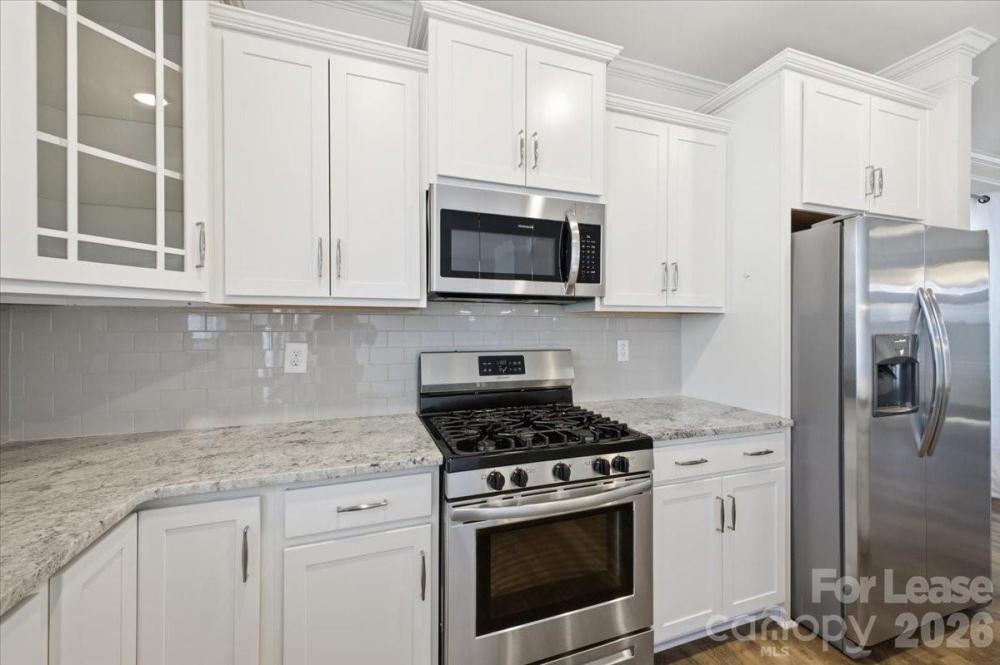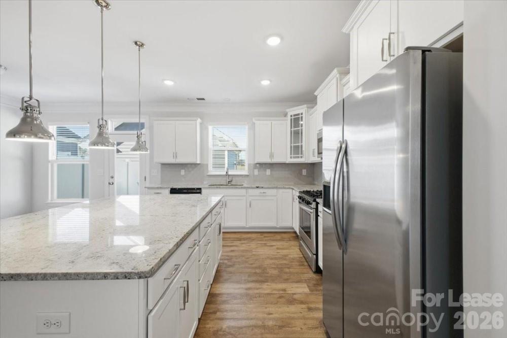 This pristine end-unit townhome is move-in ready! The kitchen features white cabinets, granite countertops, a gas range, stainless appliances, and a stunning center island. The open floor plan on the main level allows for seamless entertaining. And the enhanced vinyl plank flooring downstairs offers durability while the color is effortlessly natural. Take note of the additional windows; this end-unit home has an abundance of natural light throughout. Upstairs, you’ll find that all the carpet in the home is new and ready for you! The primary bedroom boasts custom blackout blinds, a large walk-in closet, and an ensuite bathroom with double-sinks. All bathrooms feature the white cabinets and accompanying countertops, creating a modern and clean feel. Outside, you can relax or host on this custom-built patio, complete with an outdoor seating set. The driveway provides one parking spot, and the garage can be utilized for storage or as an additional parking space. This 3BD/2.5BA home has been meticulously cared for and is still held by the original owner, who has just moved. Be the first to rent this lovely townhome! All appliances are included (fridge, microwave, gas stove, dishwasher, washer & dryer). Please see the final photo for the floor plan layout.