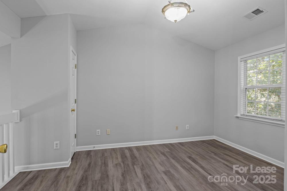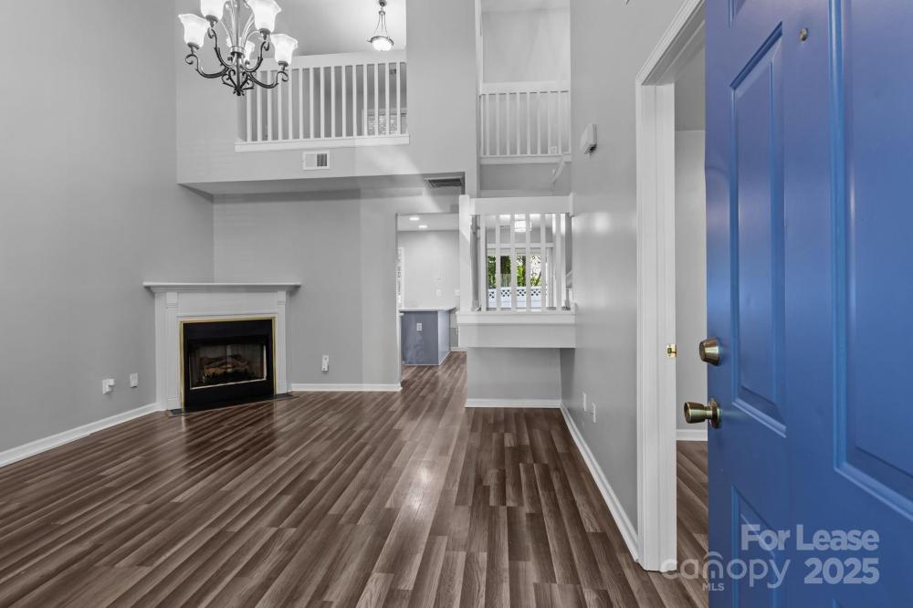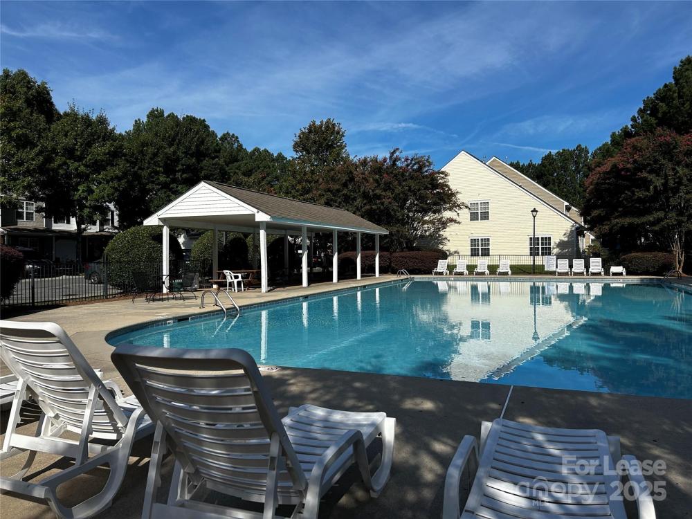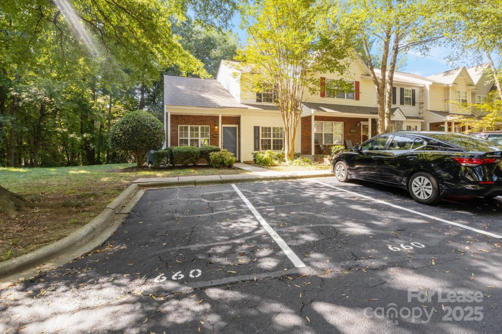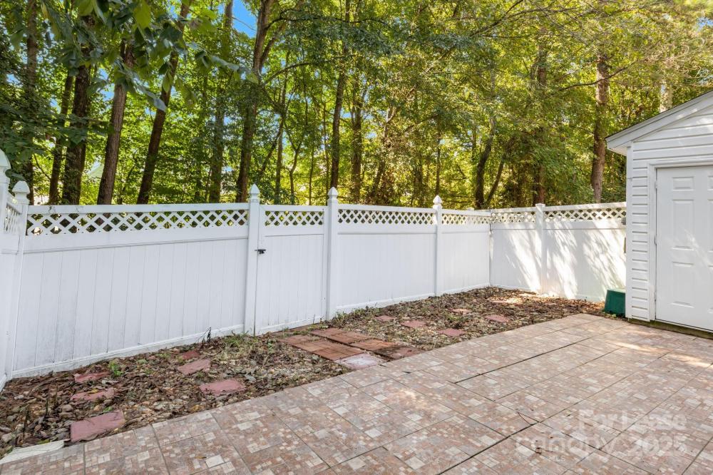 Wonderful end-unit townhouse located in the serene Holly Ridge community! Enjoy manicured sidewalks, mature tree-lined streets, and a well-maintained neighborhood pool—perfect for peaceful morning/evening walks, and hot summer days lounging at the pool! Ideally situated, this home offers quick access to I-485 and I-77, is just minutes from Northlake Mall, and close to shopping, dining, and everyday conveniences, making it a prime location at an affordable price. Inside, you’ll find a bright and airy layout featuring soaring 16’ ceilings in the living room, an inviting gas-log fireplace, and abundant natural light thanks to its end-unit position. The home features LVP flooring throughout with no carpet anywhere, fresh neutral paint, modern countertops in the kitchen and bathrooms, and stainless steel appliances including a gas range. The floor plan provides versatility and convenience with the primary bedroom on the main level featuring an ensuite bath with a dual-sink vanity, while upstairs offers two additional bedrooms, one of which can easily serve as a home office or lofted workspace overlooking the living area. Additional highlights include two dedicated parking spaces directly in front of the home, large walk-in closets for ample storage, laundry on the main level with built-in shelving, and a private wooded back patio that is fully fenced and perfect for relaxing or entertaining. This move-in-ready home blends comfort, privacy, and convenience—an exceptional find in such a desirable location. Pets are conditional, and additional pet rent or fees may apply; contact the listing agent for details.