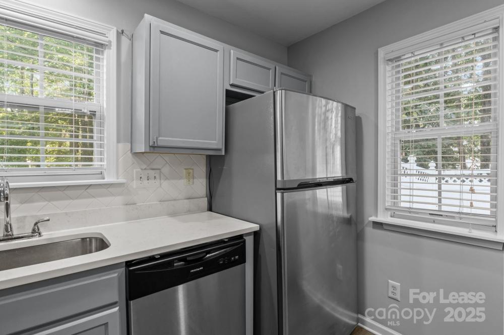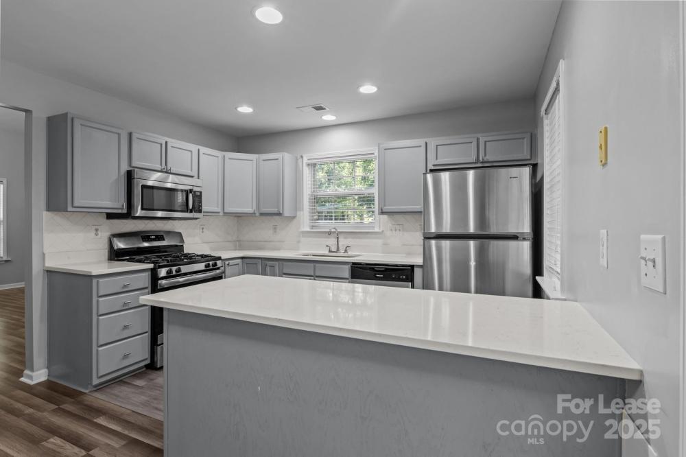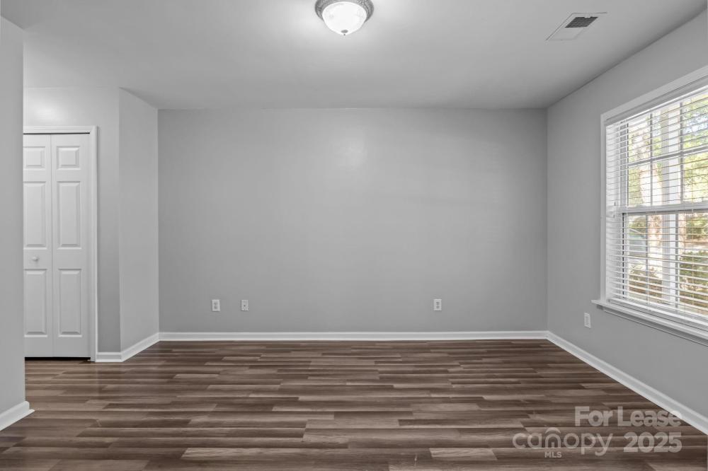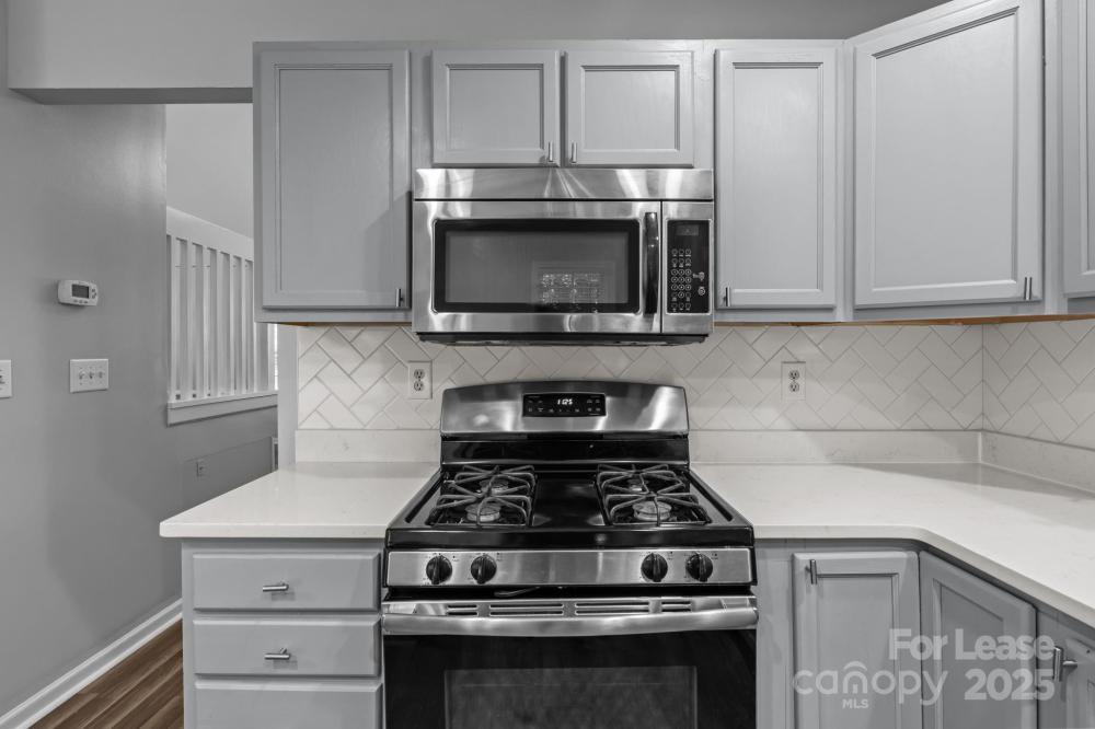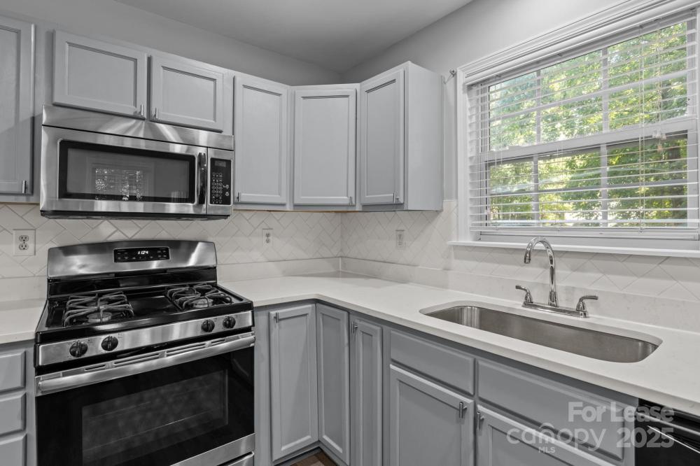 Wonderful end-unit townhouse located in the serene Holly Ridge community! Enjoy manicured sidewalks, mature tree-lined streets, and a well-maintained neighborhood pool—perfect for peaceful morning/evening walks, and hot summer days lounging at the pool! Ideally situated, this home offers quick access to I-485 and I-77, is just minutes from Northlake Mall, and close to shopping, dining, and everyday conveniences, making it a prime location at an affordable price. Inside, you’ll find a bright and airy layout featuring soaring 16’ ceilings in the living room, an inviting gas-log fireplace, and abundant natural light thanks to its end-unit position. The home features LVP flooring throughout with no carpet anywhere, fresh neutral paint, modern countertops in the kitchen and bathrooms, and stainless steel appliances including a gas range. The floor plan provides versatility and convenience with the primary bedroom on the main level featuring an ensuite bath with a dual-sink vanity, while upstairs offers two additional bedrooms, one of which can easily serve as a home office or lofted workspace overlooking the living area. Additional highlights include two dedicated parking spaces directly in front of the home, large walk-in closets for ample storage, laundry on the main level with built-in shelving, and a private wooded back patio that is fully fenced and perfect for relaxing or entertaining. This move-in-ready home blends comfort, privacy, and convenience—an exceptional find in such a desirable location. Pets are conditional, and additional pet rent or fees may apply; contact the listing agent for details.