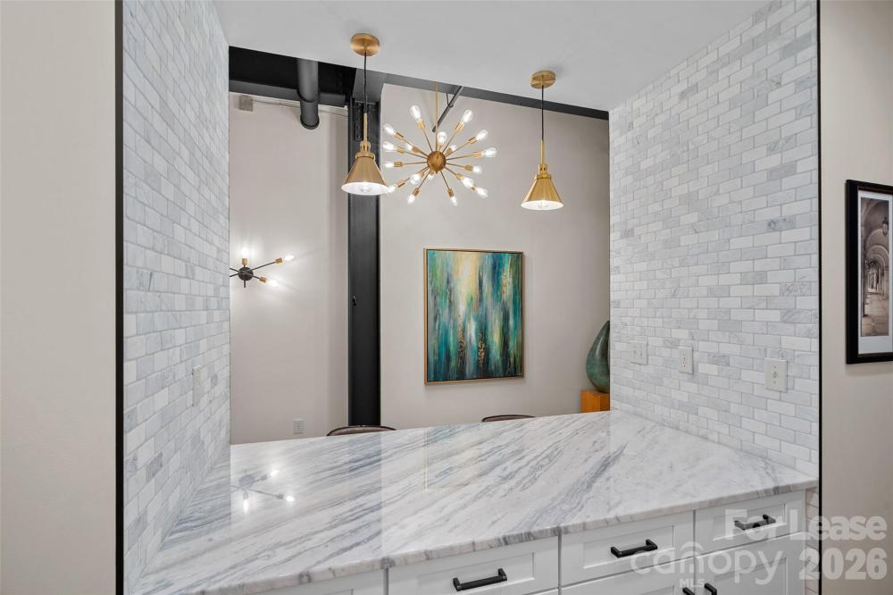 Experience refined urban living in this stunning studio-style, 1 bath loft condo for rent in Charlotte’s highly sought-after South End. Located in the iconic 1920s Lance Factory Loft Building, this one-of-a-kind residence blends timeless industrial character with sophisticated modern upgrades. Soaring 13-foot ceilings are accented by original steel I-beams and exposed brick walls create a dramatic, open atmosphere. Expansive windows flood the space with abundant natural light and feature sleek power roller shades for effortless privacy. The kitchen showcases custom cabinetry, elegant marble countertops, high-end stainless steel appliances, and a premium refrigerator with a built-in cocktail ice maker—perfect for entertaining. Thoughtful upgrades continue throughout with custom marble tile, designer LED lighting, built-in closets, upgraded doors, and high-quality fixtures that elevate every detail. The 100-year-old maple floors add warmth and authenticity, beautifully complementing the loft’s historic charm. Enjoy the convenience of an in unit washer and dryer, along with secure building access for added peace of mind. Dedicated, secured parking in a covered garage and a lockable storage unit is included. The DOWD Fitness center is directly across the street, and a nearby light rail platform makes commuting effortless. Set in the heart of South End, just steps from dining, breweries, and the Rail Trail, this exceptional loft offers a rare opportunity to live in a piece of Charlotte history without sacrificing modern luxury.