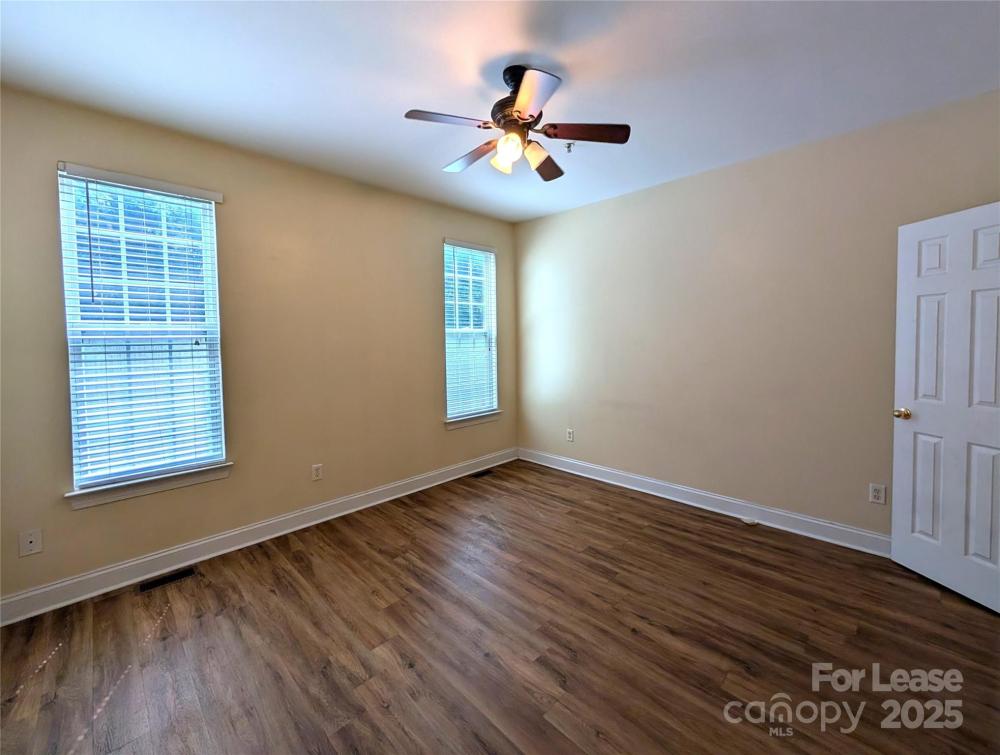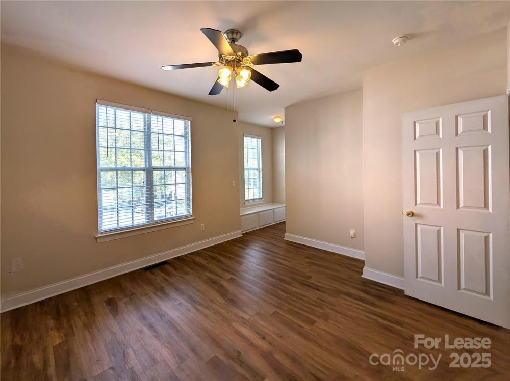 Beautifully updated townhome with THREE master bedrooms in convenient location with easy access to University area, WT Harris and I-85. Great layout. 2nd floor living area, with upgraded kitchen featuring granite countertop, 42" cabinets, tile floor and stainless steel appliances. Fireplace with entertainment niche and balcony overlooking back yard. 2 of 3 bdrms are on upper floor, all with private bath and walk-in closet. Primary bedroom 1 has charming window seat and bath w garden tub/shower. 2nd upper floor bedroom has full bath w standard size tub shower. 3rd Primary bedroom on main floor has garden tub/shower and huge walk-in closet. Den area on main floor can be office or exercise area and opens to patio/back yard. Community pool.