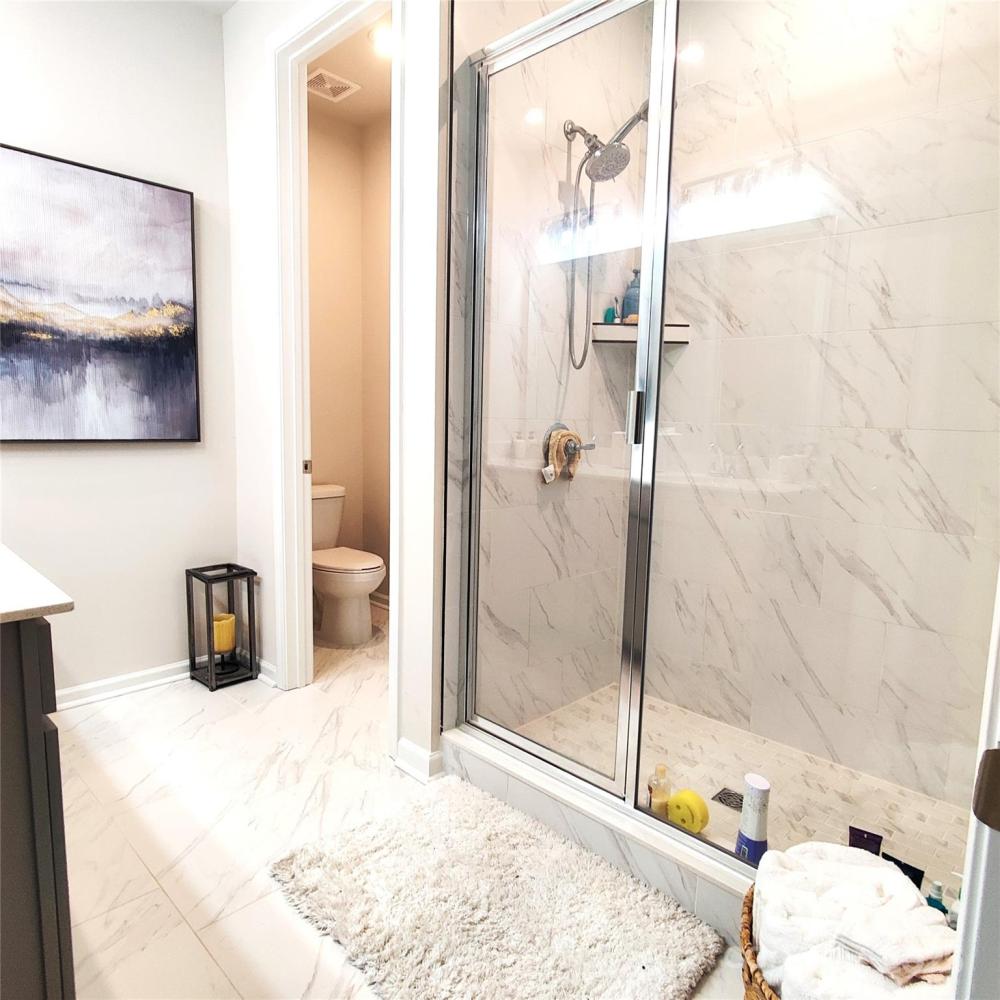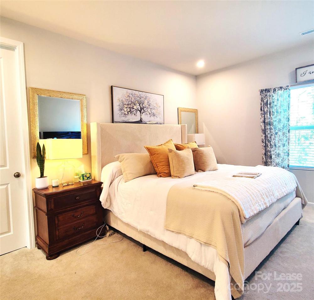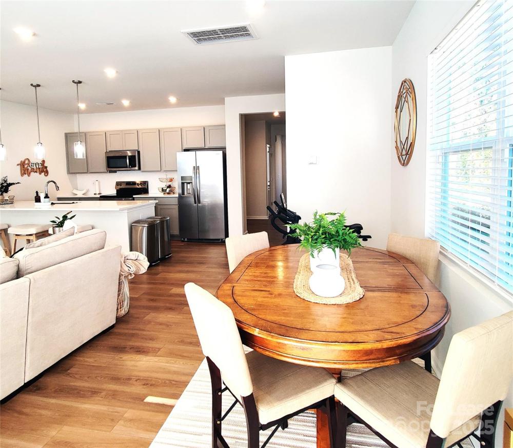 Gorgeous townhome end unit next to natural area! Kitchen has stainless steel appliances, quartz counter tops, designer light fixtures, and huge walk-in pantry! Kitchen, dining area, and family room open to each other and have lots of natural light. First floor has pretty wood-look vinyl plank floors! Primary suite has large walk-in closet and spa-like bathroom with oversized walk-in shower with tile walls and floor, double sink vanity, and water closet. Secondary bedrooms share a bathroom with double sink vanity and shower/tub combo.