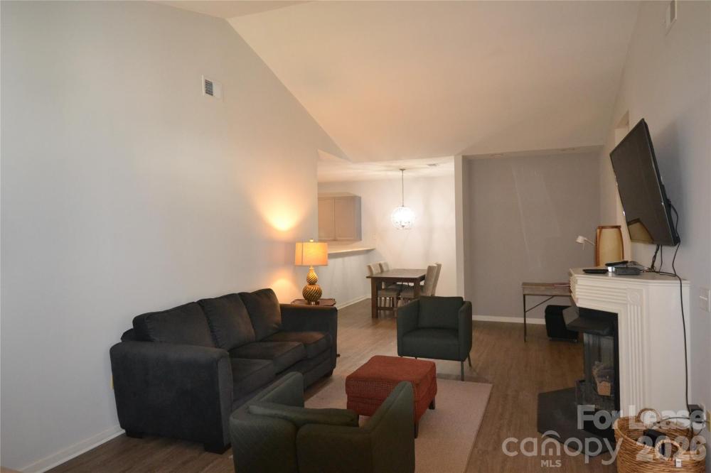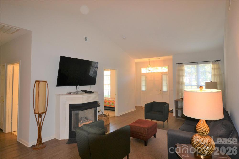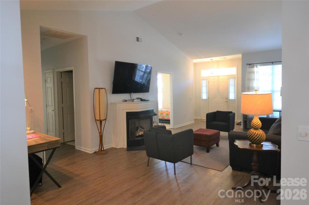 Lovely 1 story Condo home in beautifully maintained Huntington Ridge. End unit with two car garage. Enter this quaint home with vaulted ceilings and gas fireplace in the family room. Open floorplan with luxury vinyl plank flooring in the family room, dining and kitchen. Open area features office/ reading nook. Kitchen is open to the dining area with breakfast bar. Master Suite with Tray ceilings and on suite master bath, dual vanity and garden tub. Two Additional bedrooms with hall bathroom, Front bedroom has access to side covered porch perfect for coffee in the morning. Washer and dryer included as a convenience only. Owner requires 3m hanging devices for pictures no nails in walls. Pets are conditional and must be approved.