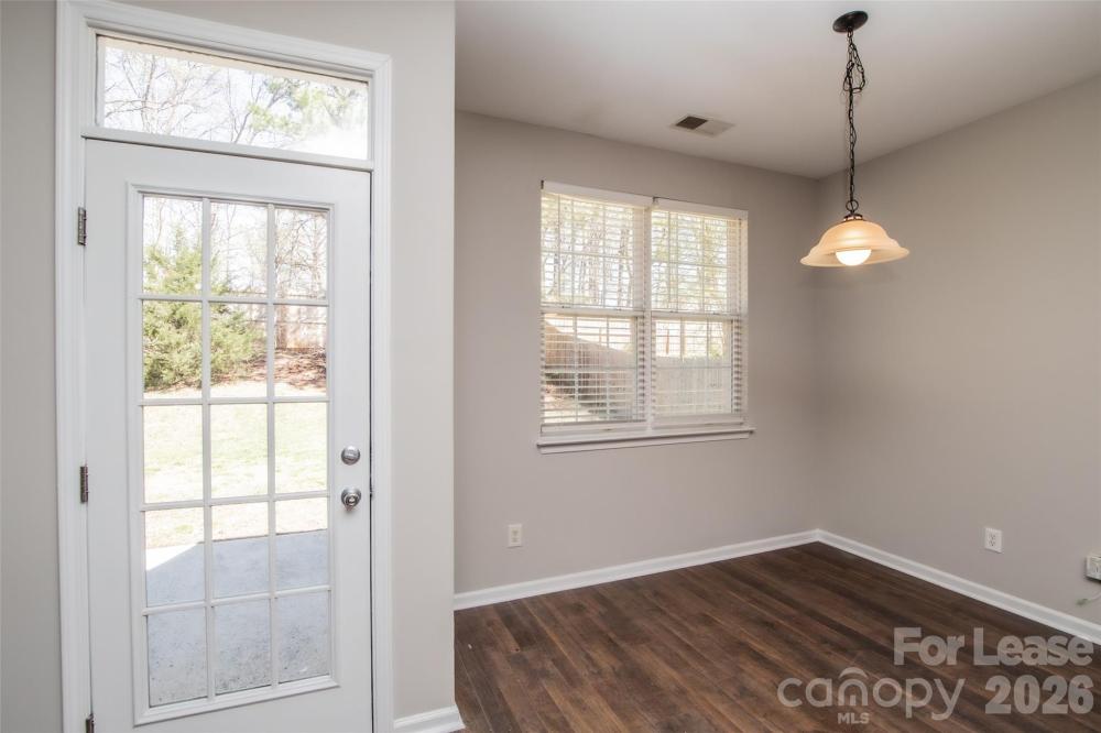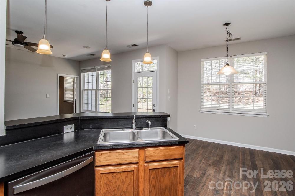 Charming Ranch Home in desirable Generals Pointe featuring true one-level living and a cozy, open floor plan with 10' ceilings. Hardwood flooring runs throughout the main living areas and primary suite. The light and bright Great Room offers vaulted ceilings, gas-log fireplace and a ceiling fan, creating a welcoming space to relax and opens to the Dining Area. The kitchen includes all appliances, abundant cabinet storage, and a convenient breakfast bar. The spacious Primary Suite boasts a large walk-in closet and a Private Bath with dual vanities, walk-in shower and a garden tub. Freshly painted interiors and updated lighting add a crisp, move-in-ready feel throughout. Additional highlights include a full-size laundry room, a spacious one-car garage, and a private back patio perfect for relaxing or entertaining. Ideally located in North Charlotte, just minutes from Uptown and the University area. No Pets, washer/dryer connections only, tenant to provide Washer/Dryer.