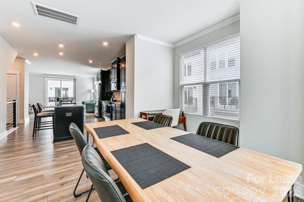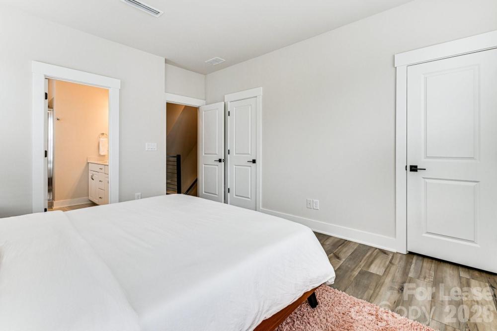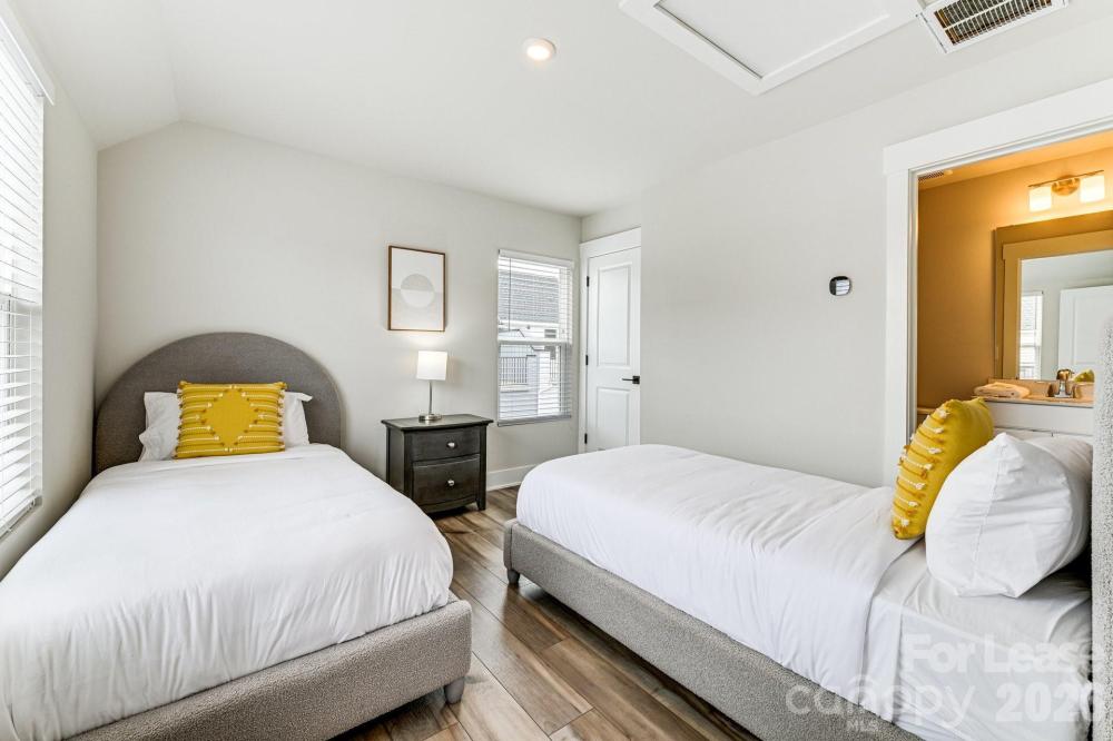 Flexible lease options available, including furnished arrangements. This upscale townhome is ideally located just minutes from the Music Factory, The Fillmore, Camp North End, and Uptown Charlotte, with Greenville Neighborhood Park right outside your door. The exclusive community showcases modern four-level residences with private rooftop terraces and attached two-car tandem garages. The entry level welcomes you with a stylish foyer that opens to the main living area upstairs, where an open-concept layout connects the expansive living room, dining space, and a chef-inspired kitchen. Step outside to the private deck, perfect for entertaining or relaxing. Upstairs, the primary suite offers a generous walk-in closet and a spa-like bath with dual sinks and a sleek walk-in shower. A second bedroom on the same level includes its own en-suite bath and ample closet space. The top floor adds even more flexibility with a bedroom or loft-style retreat, complete with a full bath and direct access to the show-stopping rooftop terrace. Hard flooring throughout—no carpet anywhere. Washer and dryer are included, and rent covers HOA dues, water, and trash service. Furnished option or short-term lease available for an additional $250 per month.