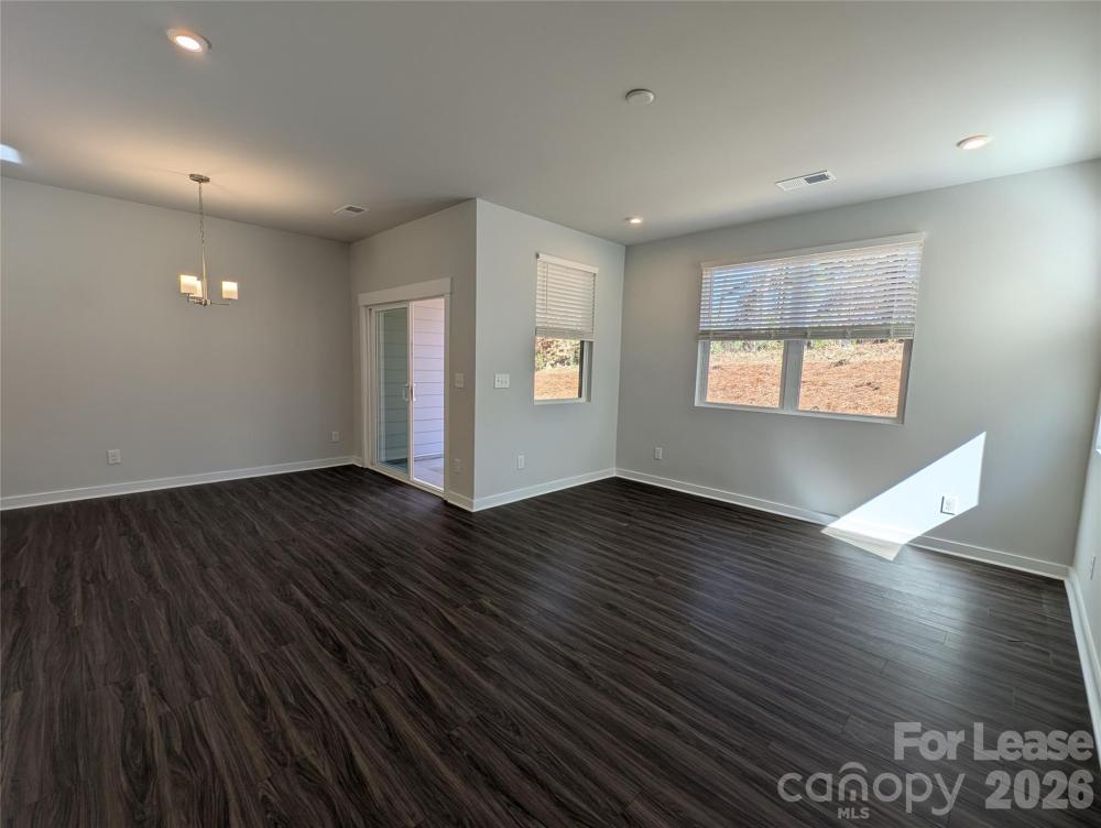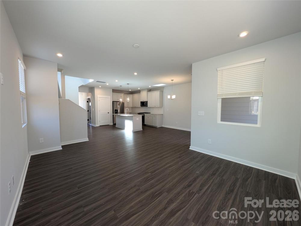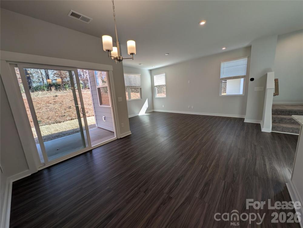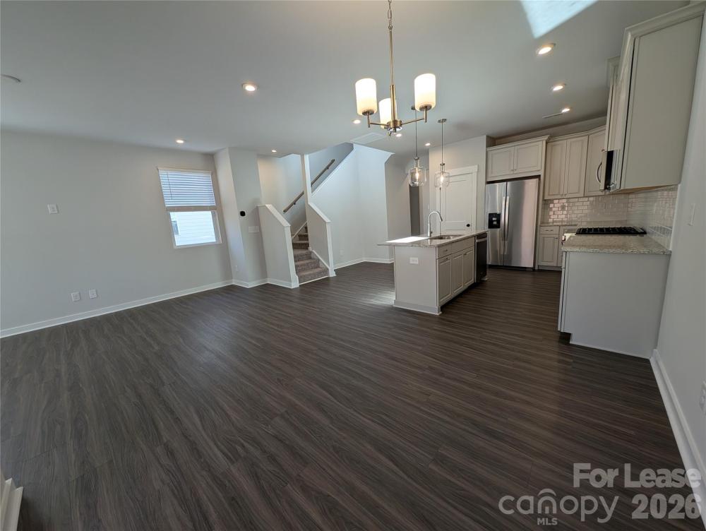 New Build, End-unit Townhome located in the Griffith Lakes Community! This pristine 2 story, 3 bedroom, 2.5 bath townhome features; a 1 car garage, a covered front porch and back patio, an enclosed backyard, and an open floor plan. A spacious office space is located on the main level. The kitchen includes a large center island, a breakfast bar, granite countertops, subway tiled backsplash, separate dining space, a pantry, and stainless steel appliances. The upper level features the primary ensuite which includes double sinks, a beautiful. shower with a seat, and a walk-in closet. Two secondary bedrooms and a shared hall bath are also located on the upper level. Washer and dryer are included. This home is conveniently located near Interstate 485, shopping, and dining, with community access to a 17-acre lake, walking trails, and a dog park. One pet, 60 lbs. and under, will be considered and is conditional with a non-refundable pet fee. Pet fees and security deposits will be determined via the outcome of the background screening processes.