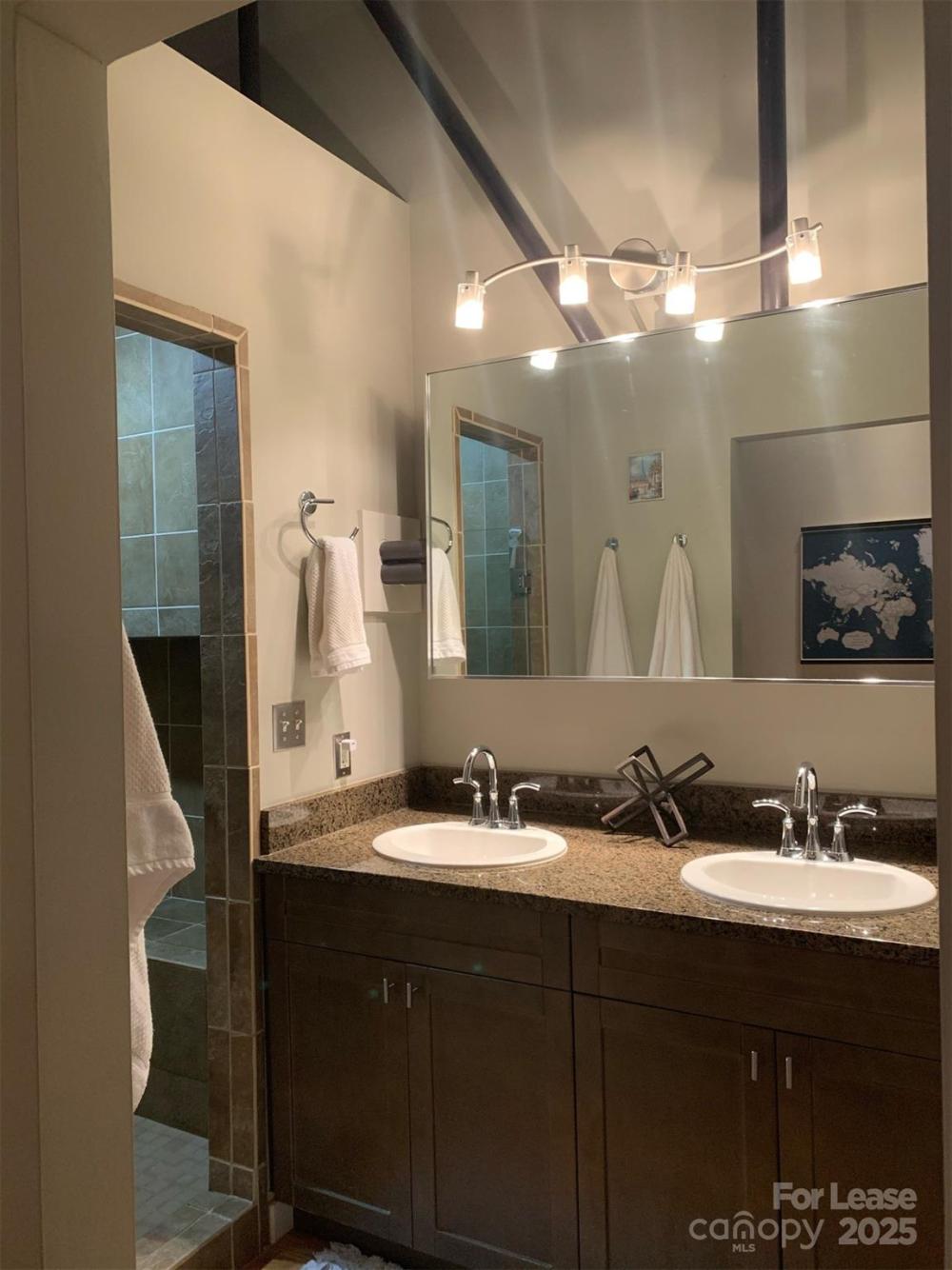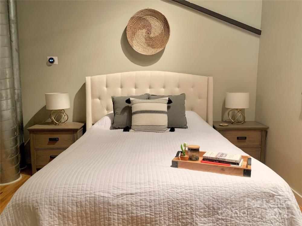 Rare opportunity at this vintage building in Noda's historic Art's District! This 2 bedroom / 2 bathroom unit features an open living space with exposed wood and 20’ ceilings. A functional electronic garage door serves as living room wall which opens up to an exposed brick patio. Unit features multiple upgrades including granite counter tops, SS appliances, custom shelving, kitchen bar, HUGE walk-in shower with bench in master. Water, cable and internet package is included with lease.