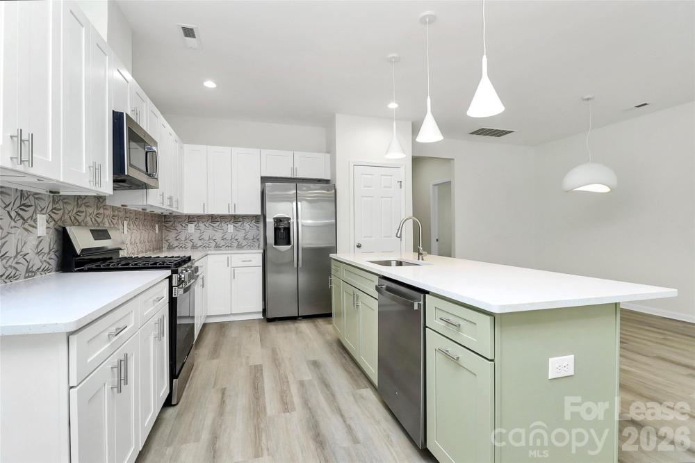 Brand new town home with designer's finishing touches. Open floor plan with a huge kitchen island, gas cook top, storage pantry, stainless steel appliances, quartz countertop and tile backsplash. Extra storage space underneath the staircase. LVP flooring throughout the entire town home. Functional floor plan with 3 bedrooms and a loft area upstairs. Primary bedroom comes with a good size closet and a tiled walk in shower. Picture window let in sunlight in primary bathroom. Double sink in the guest bathroom. Large windows throughout the town home, bring in plenty of natural light. Convenient location with easy access to grocery store, coffee shop and restaurants in Mint Hill downtown, and I485. About 20 minutes drive to Charlotte uptown, South Park and UNCC.