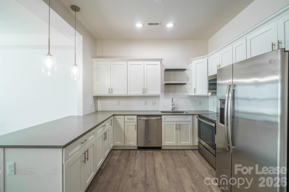 Well Maintained Condo! Laminated Hardwood floors throughout, Open Floorplan, Tall Ceilings, Ton of Windows for Natural Light. White Cabinets, Stainless Appliances, Refrigerator, Tile Backsplash, Stack Washer/Driver, Huge Owner Suite with Trey Ceilings and Fan, Updated Bath with Tile Floors, Deep Tub with Tile Surround, Fenced Court Yard, Patio. Adorable.
