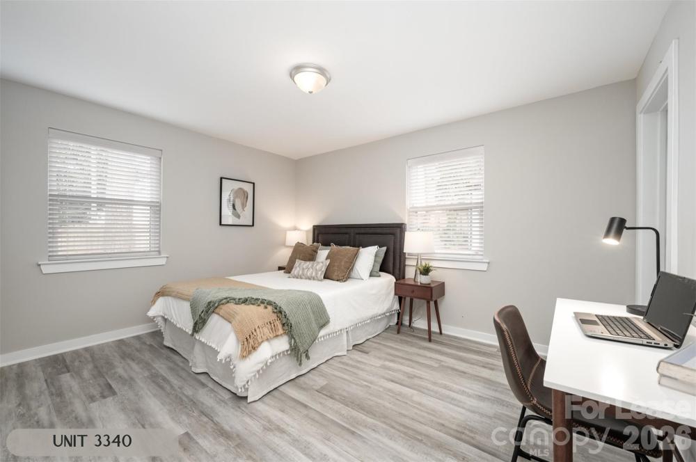 Welcome to 3340 Washburn Ave! OPEN floor plan, TWO bedrooms, & TWO full baths. Building was renovated in 2021 with new electric, roof, plumbing, & cosmetic finishes. Updated kitchens with new cabinetry, quartz counters, & stainless appliances. Low maintenance vinyl plank flooring. Property has a 6’ wood fence around the backyard. Dedicated parking area. Central location close to MoRA, Eastway and Oakhurst areas with new retail & restaurants. Short drive to Uptown Charlotte & Plaza Midwood.