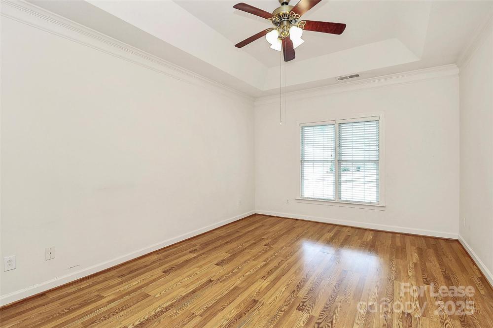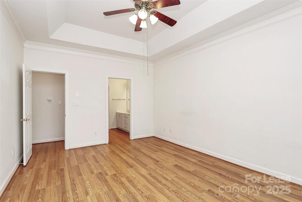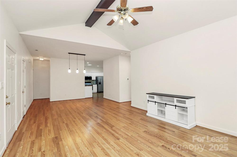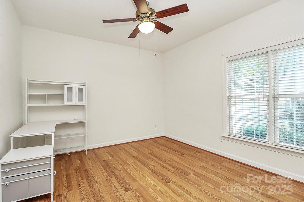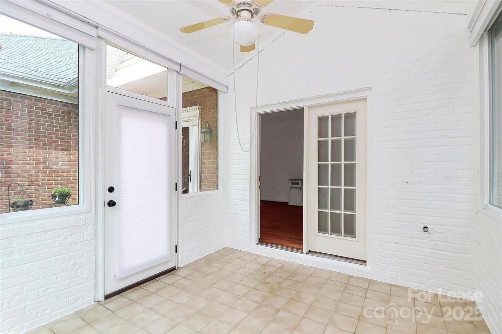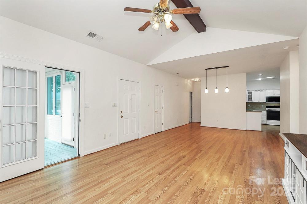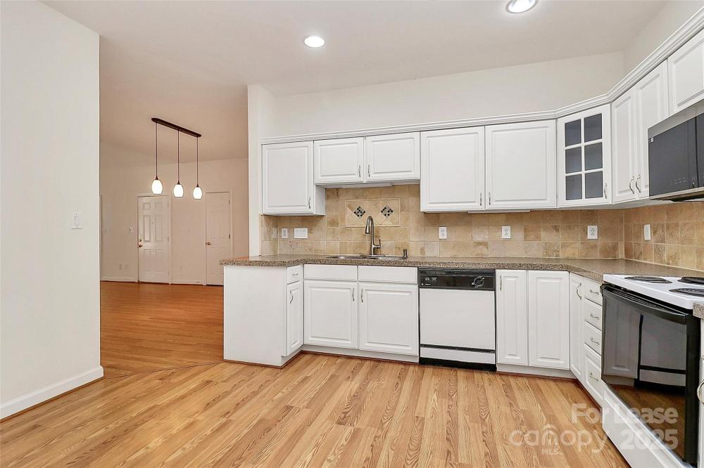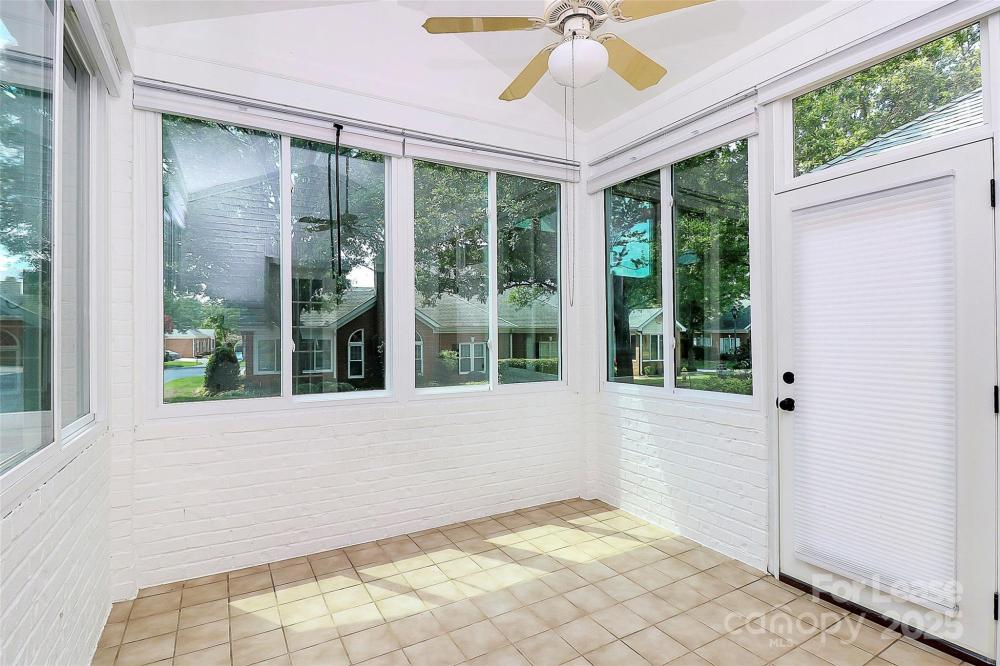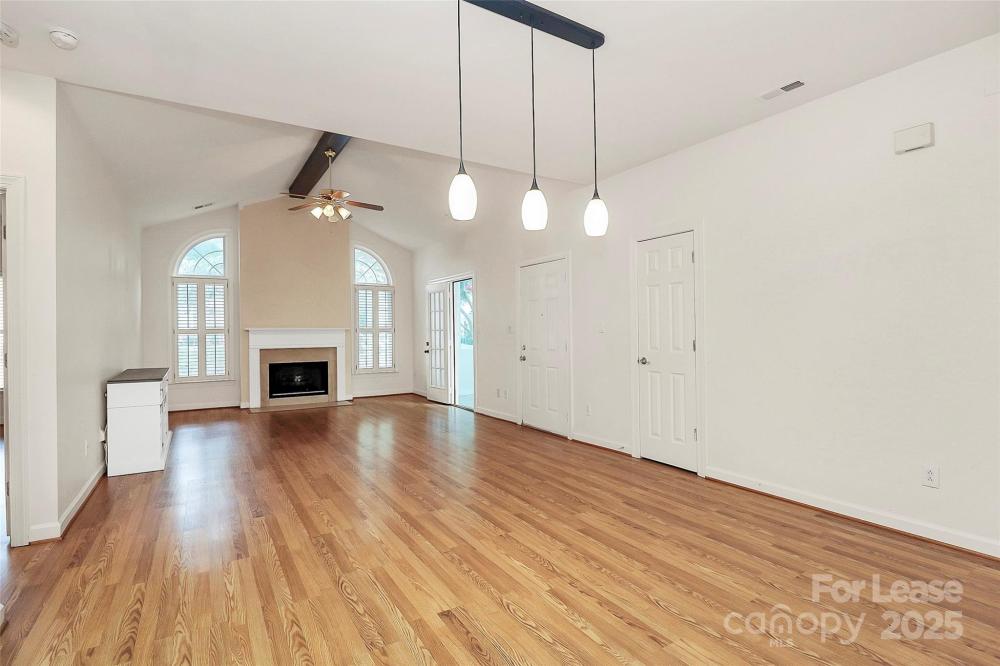 Welcome to this rare end unit condo located in the sought after neighborhood of Troon At Ballantyne. Perfectly located within shopping and dining, come enjoy the community's incredible amenities, outdoor pool, clubhouse, fitness center, pond and more. This well maintained home features wood floors throughout and is very light and bright. The vaulted family room with a gas log fireplace is open and great for entertaining. There is a conveniently located sunroom attached that offers an additional 120 sq ft of space to relax and enjoy the natural light. The kitchen is large and nicely updated with an additional eat in area. The fantastic split bedroom plan boasts spacious bedrooms and attached bathrooms. The 2-car garage also has plenty of closet storage. Available now.