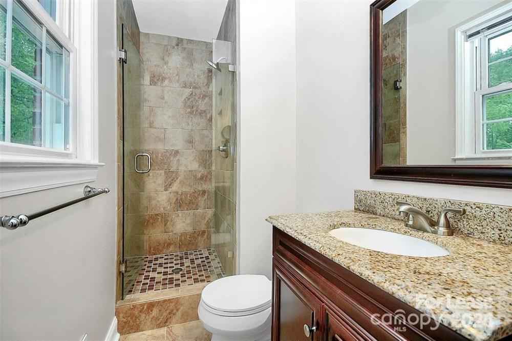 Classic Old Providence home on over a half acre! 4 bedrooms , 3 full baths, garage, fenced back yard. stunning screened patio. Sure to impress you with its multiple large living spaces, beautiful hardwoods, updated bathrooms and huge yard! Main level has open living and dining room, updated kitchen with granite and stainless appliances overlooks serene back yard. Three bedrooms and 2 full baths on the main level. Downstairs offers a very large living space with brick hearth, gas logs and opens to a peaceful screen porch. Downstairs features another bedroom suite with private bath . The garage offers tons of space with shelving and cabinets. Laundry is also in the garage. Minutes to shopping, school , dining, Southpark, Uptown, Ballantyne. RENTAL OFFERING- $500 OFF 1ST MONTH'S RENT.