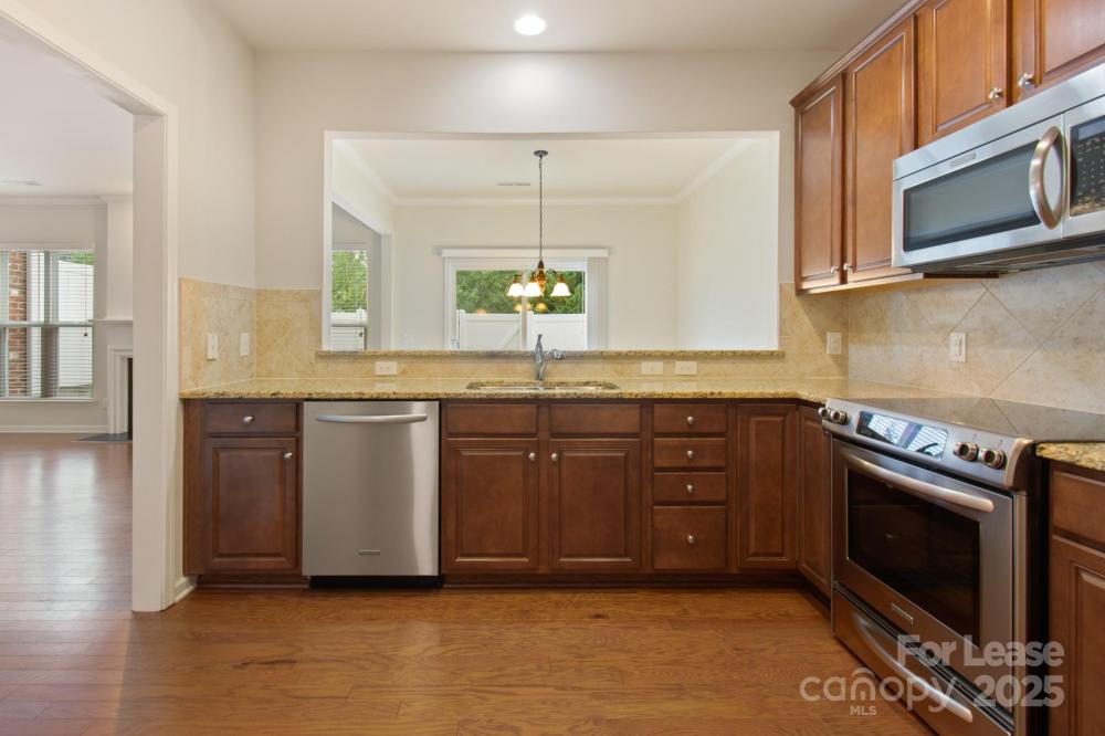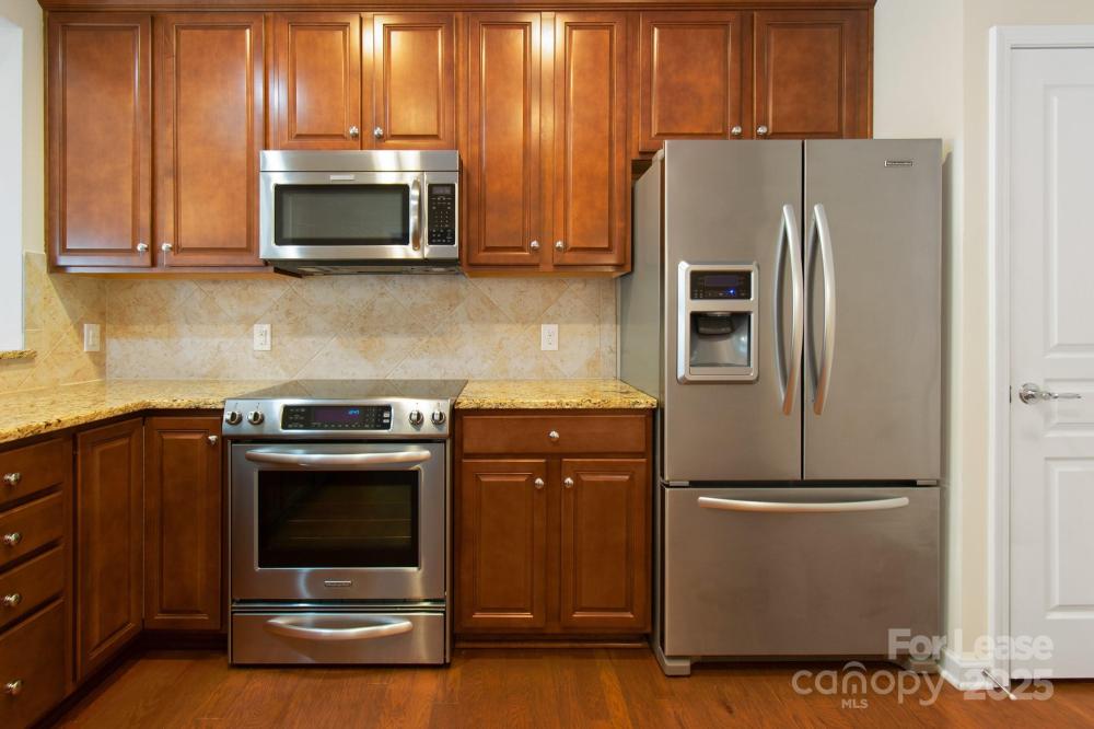 Full brick, end unit luxury townhome. It is in the desirable area of Ardrey Kell neighborhood, south of Ballantyne! Features include: granite countertops in the kitchen and bathrooms, hardwood flooring throughout first floor, ceramic tile in baths and laundry room & extensive moldings. Private fenced in back yard with concrete patio. Washer and Dryer included! Walking distance to shopping and dining. Move in ready.