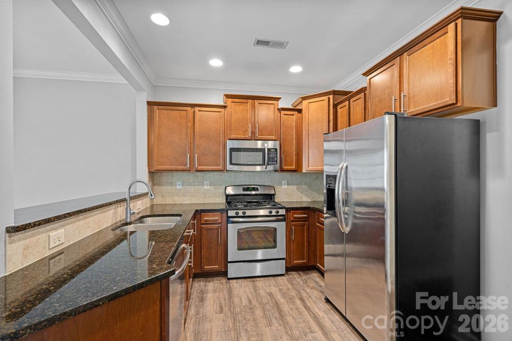 HALF OFF FIRST MONTH'S RENT! Beautiful 3BD/2.5BA townhome with attached 2 car gar in sought after Ballantyne's Riviera community. Well maintained, spacious corner unit with 9' ceilings throughout. Hardwood floors on main level. Tile in full baths and laundry room. Kitchen has granite countertops, tile backsplash, gas stove, stainless steel appliances and 42" cabinets. Neutral paint & lots of natural light. Master bedroom with tray ceiling, large walk-in closet and private bath featuring separate garden tub/glass shower and dual sinks. Great location close to restaurants, shopping and entertainment. Technology Fee: $20/Month Pets: Non-refundable Pet Fee of $250/pet + monthly Pet Rent of $20/pet