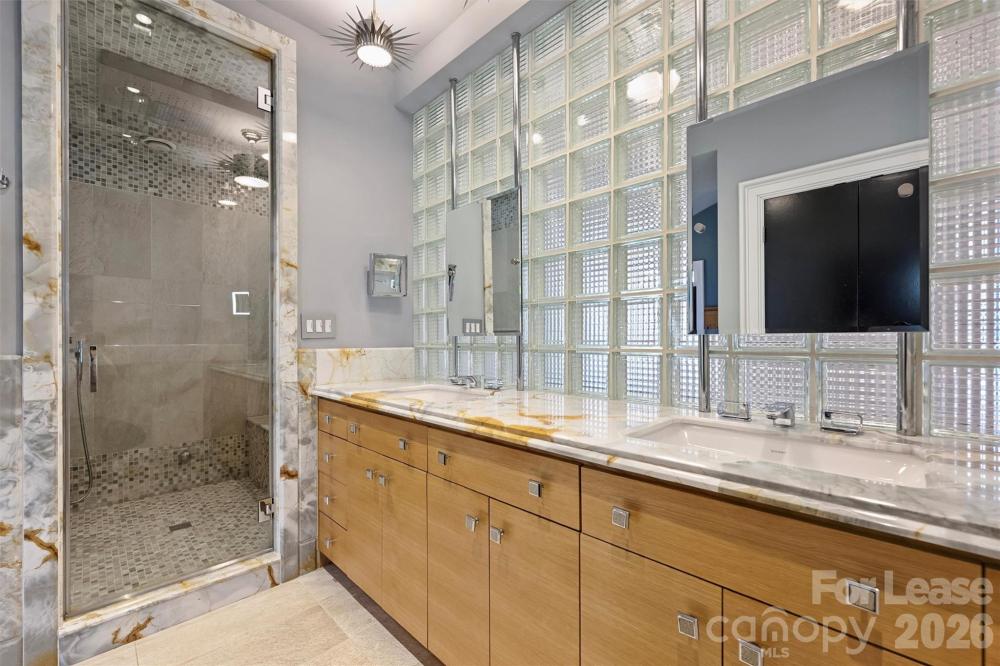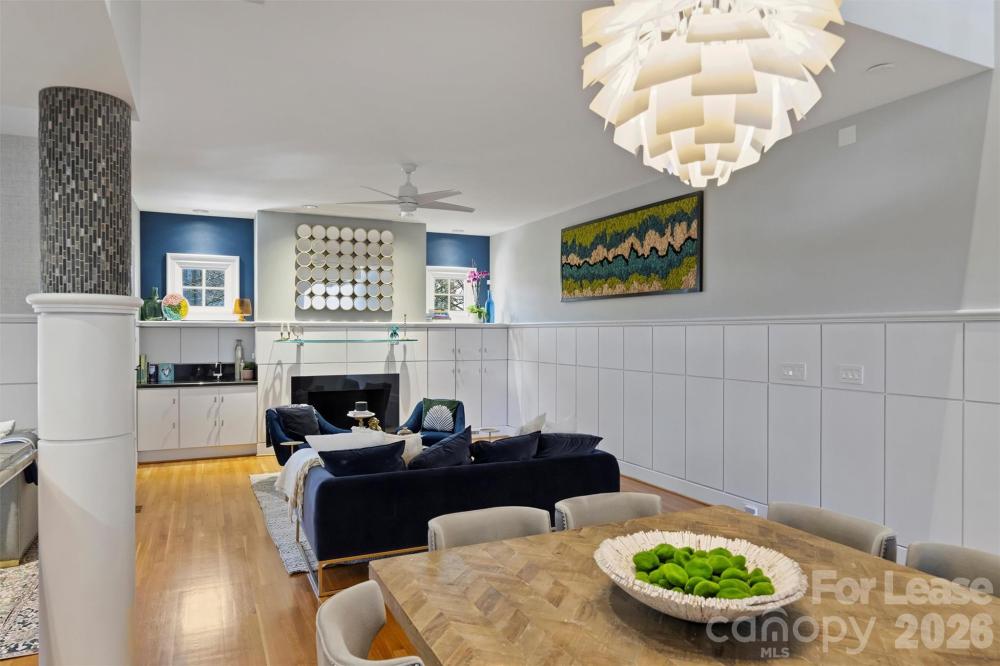 Set within the heart of Dilworth Crescent Row, this turn-key, fully furnished end-unit residence offers a rare opportunity to live in one of Dilworth’s most walkable and sought-after enclaves. Steps from acclaimed restaurants, boutique shopping, and just moments from Uptown and Bank of America Stadium, the home delivers effortless city access with the privacy and polish of a thoughtfully designed retreat. Completely reimagined in 2019 by renowned designer Scott Carpenter, the residence spans multiple levels with soaring ceilings, an open iron staircase, and an inviting flow that works beautifully for both everyday living and entertaining. The main level features a light-filled great room with gas fireplace, seamlessly connecting to a beautifully appointed dining area and a chef’s kitchen with custom lacquered cabinetry, granite surfaces, Sub-Zero refrigeration, and premium appliances. Just off the kitchen, a charming sitting area offers the perfect place for morning coffee, casual conversation, or a quiet moment to unwind. A richly styled lounge with custom built-ins creates an intimate retreat for reading, conversation, or an evening cocktail. The built-in bar moment transforms this space into a true showpiece, equal parts library, sitting room, and private speakeasy. Upstairs, the primary suite feels like a true sanctuary with dramatic onyx finishes, a steam shower with waterfall head, and a private balcony. Two additional guest rooms offer comfort and privacy, each with beautifully appointed ensuite baths. The lower level includes a fourth bedroom, full bath, and a dedicated home theater designed for immersive movie nights, game-day gatherings, and relaxed evenings at home. An expansive walk-in attic on the fourth floor provides exceptional storage. Outdoors, a limestone patio extends the living space with a gas fireplace, fountain, custom lighting, and outdoor kitchen, creating a perfect setting for evening gatherings. A private gate opens directly to Dilworth Road, offering easy guest parking and an immediate connection to the neighborhood’s vibrant energy. Utilize the home gym with weight system and Peloton already included. An expansive walk-in attic on the fourth floor provides exceptional storage. Offered fully furnished, utilities included, and truly move-in ready... this is a rare opportunity to step into a lifestyle, not just a home. Schedule your private tour and experience Dilworth living at its best!