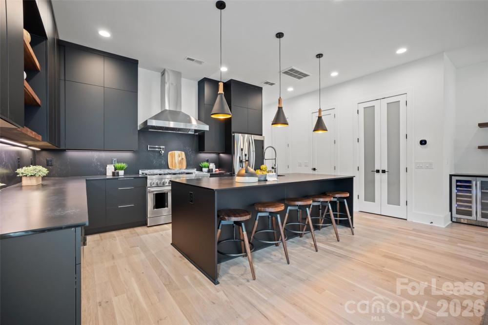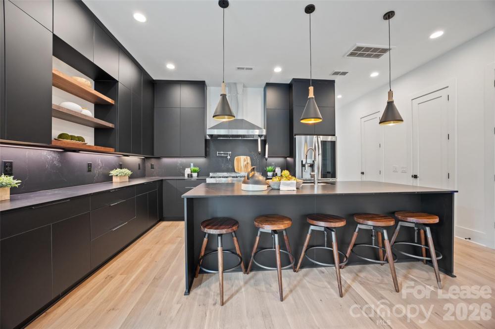 Luxurious end unit townhome located in the heart of SouthPark - stroll to your favorite shops & restaurants in just minutes! The open floor plan showcases the white oak flooring & the 10 ft ceilings highlight the natural light pouring in. The chef's kitchen is a true standout, featuring stunning beige cabinetry, open shelving, 9'-foot island w/ quartz countertops, SS appliances (hello double oven!), endless cabinet & countertop storage AND a walk-in pantry. Another bonus? The accompanying dry bar area, complete with a wine fridge, cabinet storage & walnut shelving, perfect for hosting/entertaining! Moving into your open concept dining area/living room space, you'll find a beautiful electric fireplace, & doors leading you out back, where you'll enjoy dining al-fresco under your covered porch that is completed by the fenced in back yard. The lavish primary suite is accompanied by your spa-like en-suite bathroom + large walk-in closet. Also upstairs are your loft area/ flex space + 2 more additional bedrooms.
