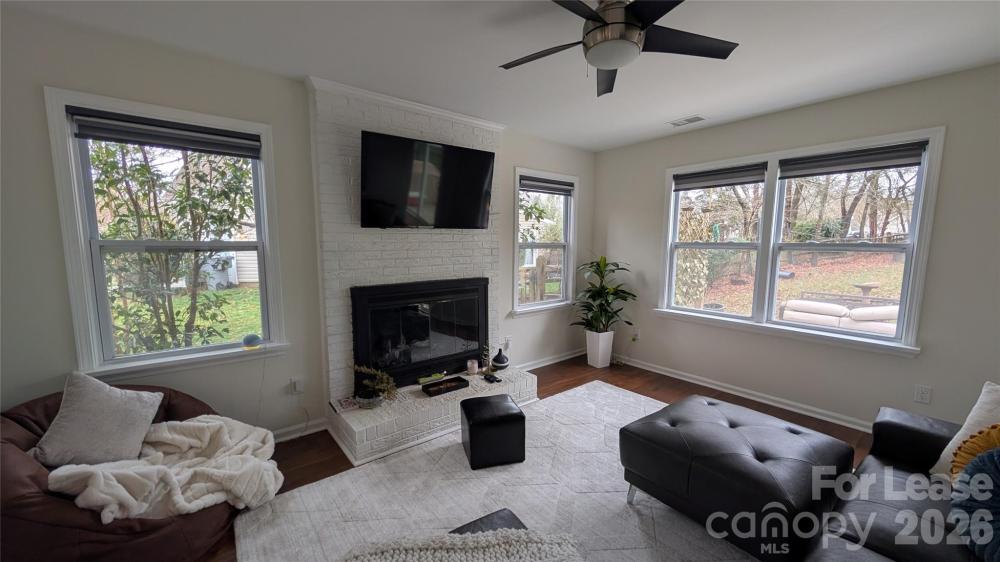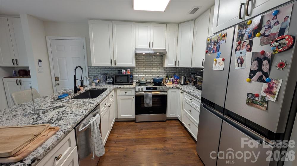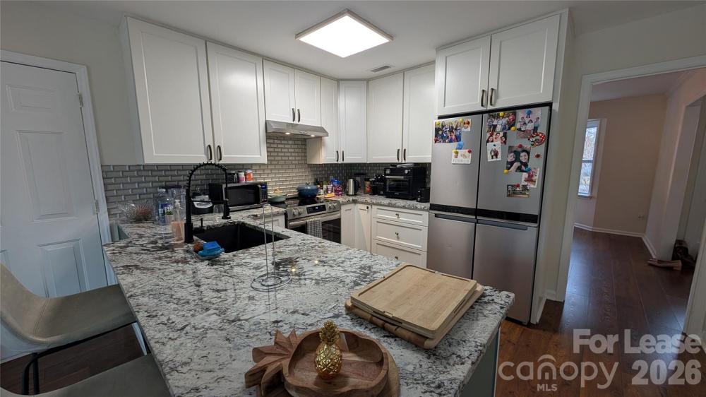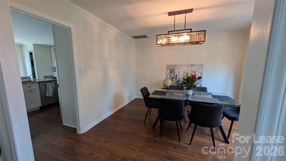 Beautifully updated home in sought after Cameron Wood on a quiet cul-de-sac. This wonderful 3 bedroom, 2.5 bathroom home boast wood floors on main, fully updated powder room, & LG. dining room with designer lighting and bay window. The beautiful kitchen has newer white cabinets, high end granite, tile back splash, stainless steel appliance and eat-at bar. There is also an eat-in breakfast area that leads to a huge fenced backyard with oversized deck. First floor laundry with stackable washer & dryer are included. There is an oversized 1 car garage off of the kitchen. A lovely family room with new ceiling fan, designer window coverings, fireplace & opening to the kitchen for easy entertaining round out the first floor. Upstairs has a large primary bedroom with a walk in closet & new ceiling fan. The primary bathroom has been updated with new sink & cabinet, new hardware and fixtures, new toilet & huge walk in shower. Two more large secondary bedrooms with an updated Jack-N-Jill bathroom with new sink & cabinet, hardware & fixtures. Cameron Wood is located in sought after South Charlotte, only minutes away from Quail Hollow, South Park, several Greenways, shopping, dining & entertainment. Easy commute to Uptown and the airport make this the perfect place to call home! Access to Cameron Wood Swim & Racquet Club is available at additional cost. Visit www.cwsrc.com for further details. No Cats Allowed. 1 small/medium dog allowed - breed restrictions do apply. Absolutely no smoking or vaping inside the house or on the property.