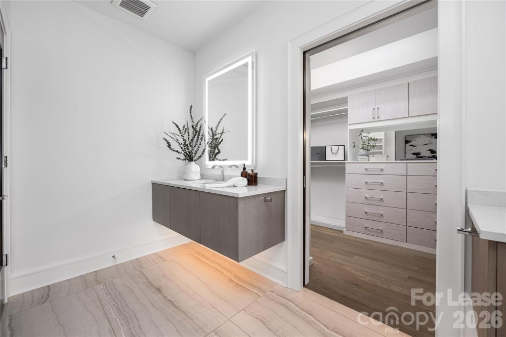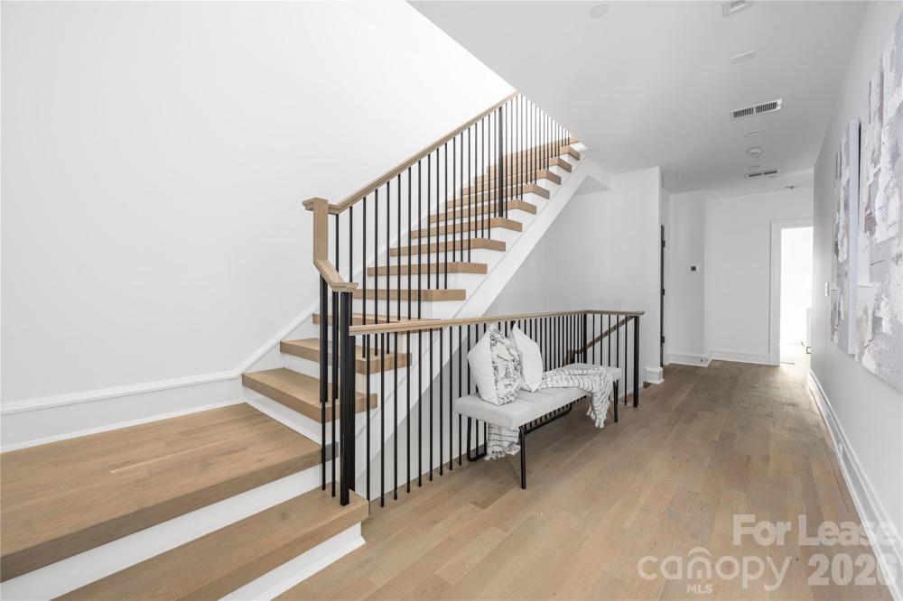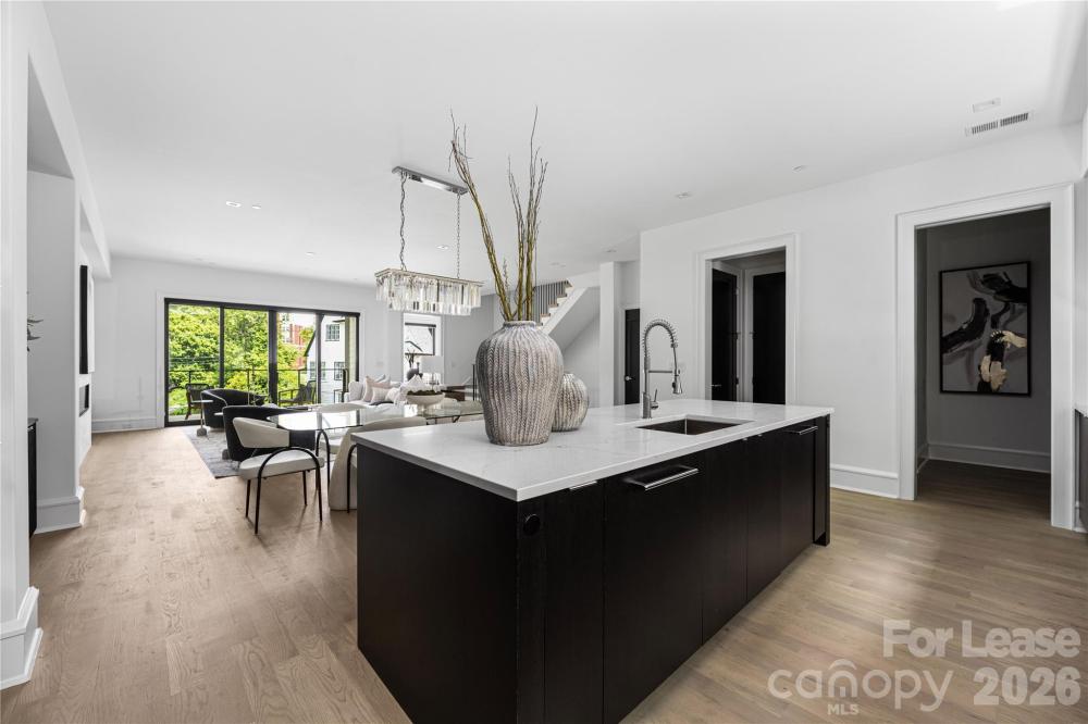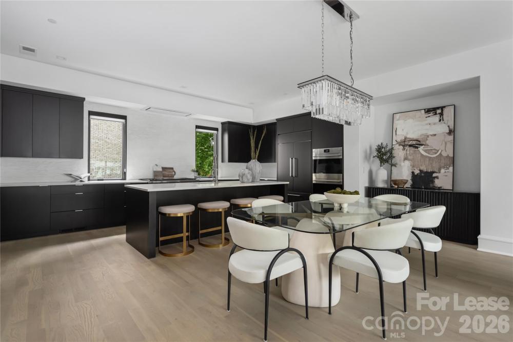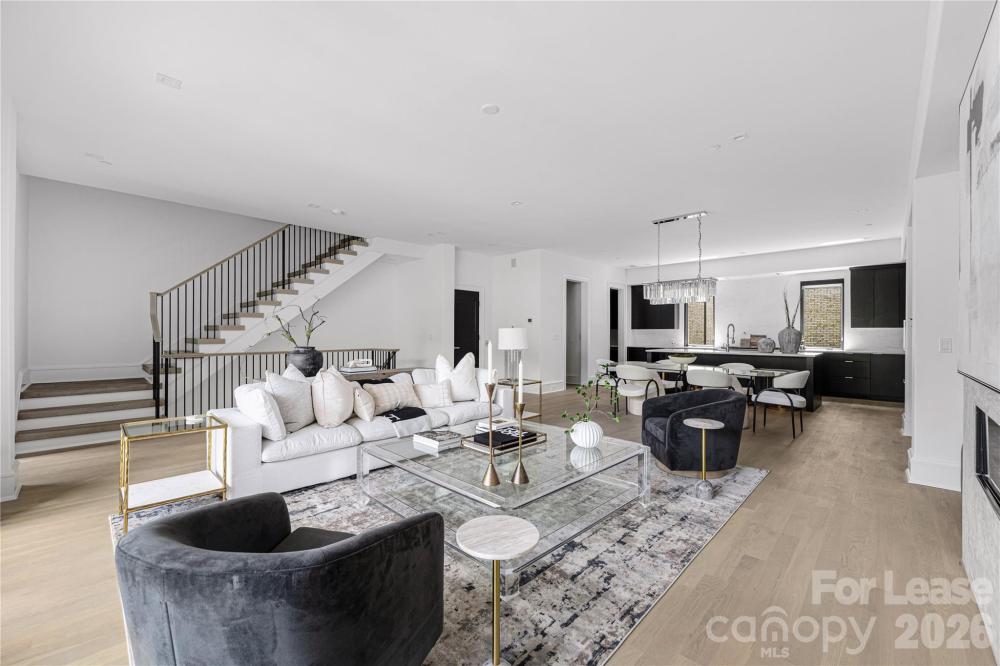 Welcome to this stunning modern townhome located in the highly sought-after Myers Park area. This beautifully crafted residence, part of an elite five-unit enclave by Chiott Custom Homes, is just steps from shopping, dining, and the Little Sugar Creek Greenway. The townhome offers a private 2-car garage leading to a shiplap-accented drop zone, flex guest room/office with an en-suite bath, and access to a serene outdoor space. The main level is designed for entertaining, featuring a light-filled, open floor plan, a chef’s kitchen with Sub-Zero and Wolf appliances, and a large working island that connects to the dining area and family room. Enjoy a cozy covered balcony with views of Queens Road or unwind in your private planning office. The upper level includes a luxurious primary suite with a spa-like bath, two guest rooms, a full bath, and a laundry room. Take the elevator to the rooftop terrace and enjoy panoramic views of the Queen City skyline-perfect for hosting gatherings!