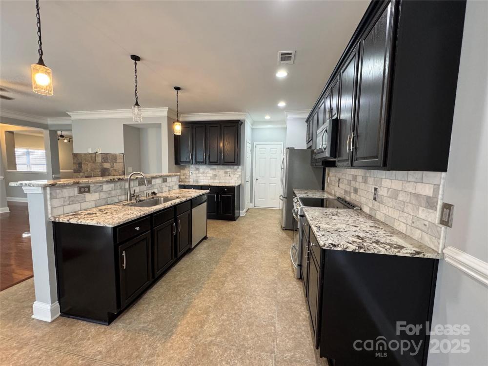 Don't miss out on this Two Story Home, located in the Steele Creek, Hamilton Lakes neighborhood! Interior features 4 bedrooms, 2.5 bathrooms with open floor plan and over 3,000 square feet. Large living room with beautiful hardwood floors, cozy great room w/stone gas fire place and formal dinning room. Gourmet eat-in kitchen with granite countertops, plenty of cabinet space & island w/breakfast bar. Home does come with Courtesy use only appliances, (Refrigerator, dishwasher, over the range microwave & electric range/oven). All bedrooms are upstairs along with a nice size loft and laundry room (washer & electric dryer hook-ups). Large main suite with tray ceilings, a private bath with standing shower, garden tub and spacious walk-in closet. Exterior features 2 car garage with fenced in backyard & patio. Just minutes to shopping, dining & entertainment venues. Make this house your home today! *No pets allowed.