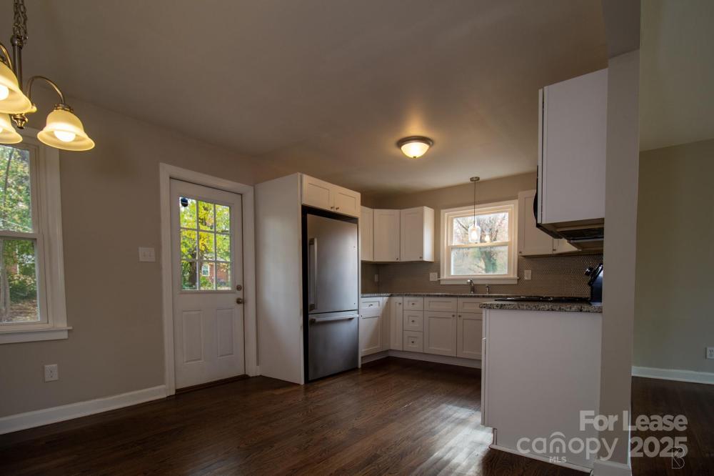 Cozy renovated 3 bed, 1 bath in BOOMING Clanton PARK. Open floor plan. Minutes away from South End, 77, shopping, bus line, Uptown. So many updates in this home - kitchen cabinets, granite countertops, kitchen backsplash, stainless steele appliances (electric stove, dishwasher, microwave), tile in bathroom, shower and laundry area, updated bathroom vanity. Refinished hardwood floors throughout. Updated light fixtures, Stackable washer/dryer off bathroom with functional pocket door. Ample natural lighting. Utility room out back with storage, gravel driveway. Fenced in yard.