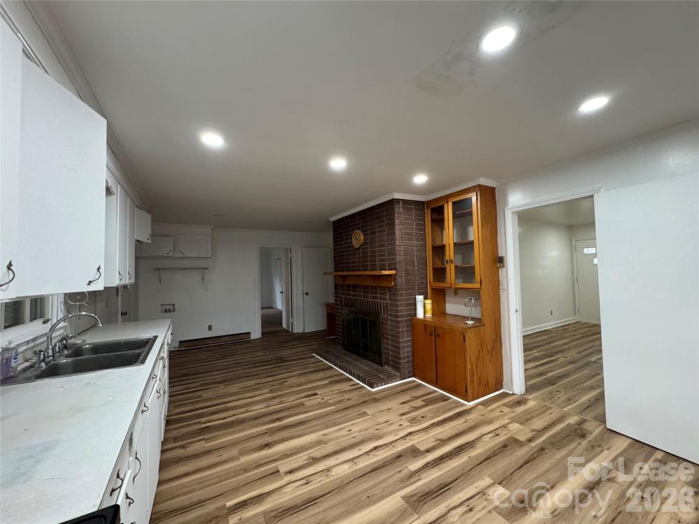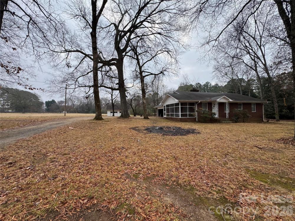 Cute all-brick 3-bedroom, 2-bath ranch sits on 1.5 acre of land with no HOA. Very quiet street, conveniently located near shopping centers, Premium Outlet, and just minutes from I-485. Newly installed LVP floor, no carpet, freshly painted. Spacious kitchen with vintage cabinetry, brick fireplace, and an inviting screened porch perfect for relaxing or entertaining. The large yard provides plenty of space for expansion, gardening, or outdoor living. A 2-car attached carport AND a 2-car detached garage provides amber parking and storage.