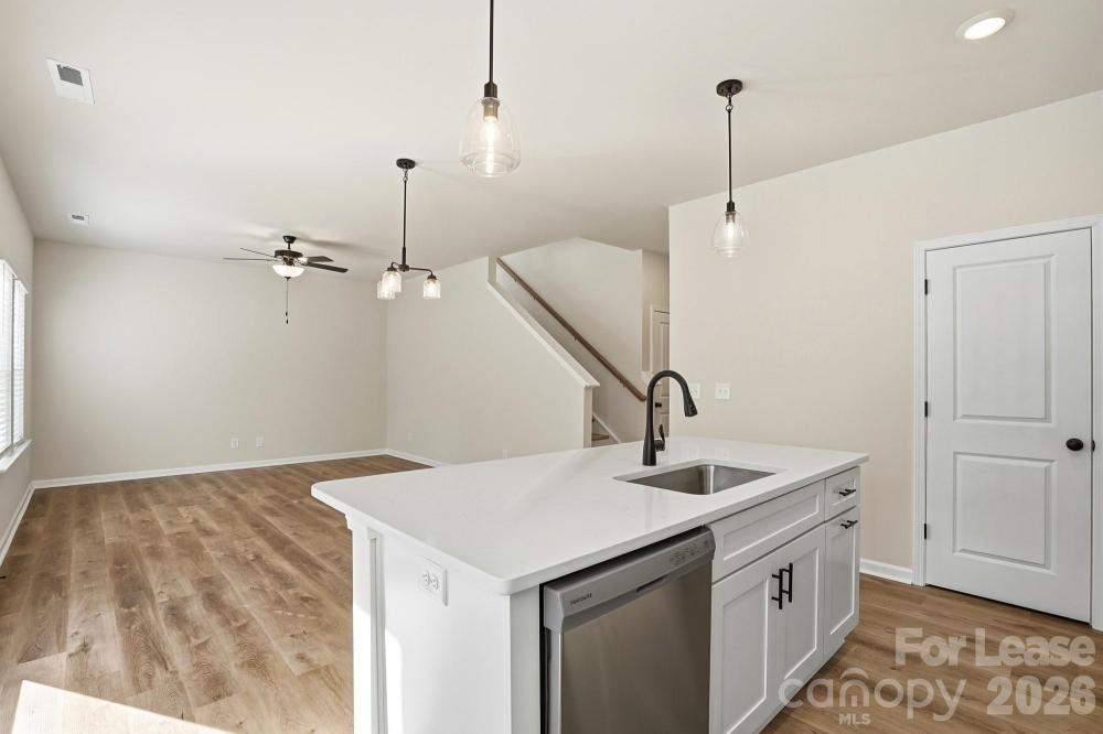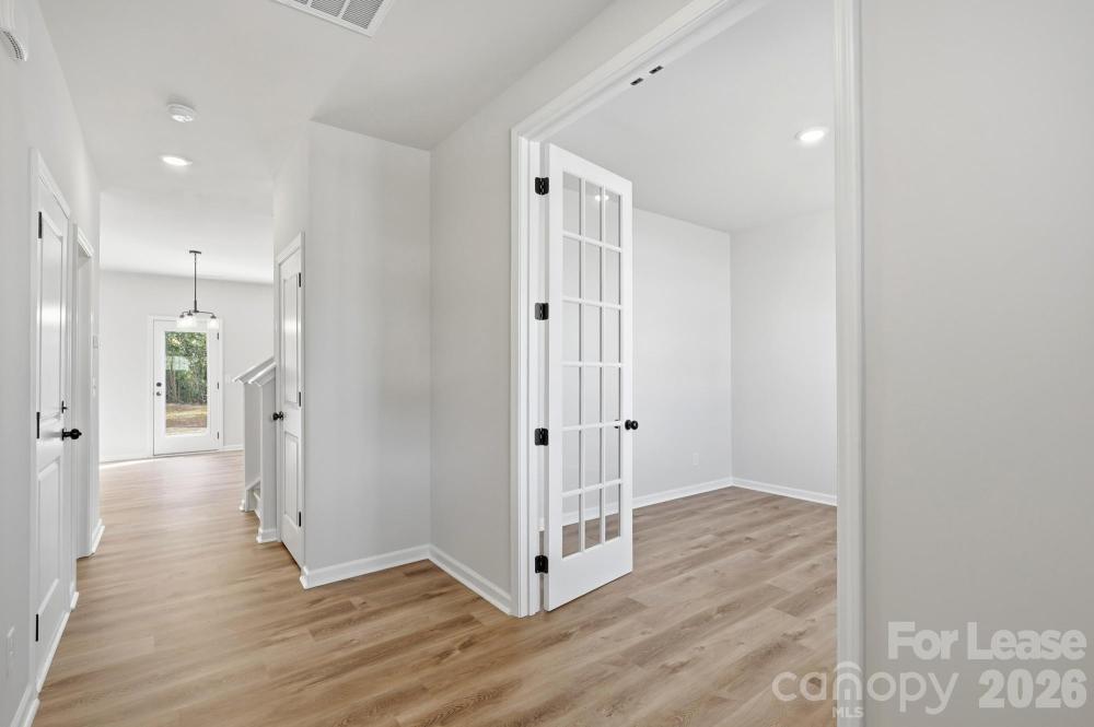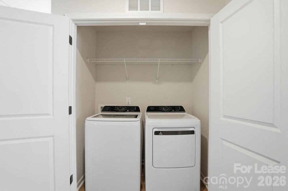Be the first to live in this beautifully designed Willow plan located in the brand-new community of The Pines at Paw Creek. This 4-bedroom, 2.5-bath home with a 1-car garage offers a modern open layout, quality finishes, and thoughtful spaces ideal for today’s lifestyle. A welcoming foyer leads to a versatile flex room with French doors—perfect for a home office, playroom, or quiet retreat. The main level features durable LVP flooring and an open concept design that flows seamlessly from the kitchen into the living area and out to the rear patio and backyard. The kitchen is a standout with shaker-style slow-close cabinetry throughout, quartz countertops, a large center island ideal for bar seating, tile backsplash, and stainless steel appliances. Upstairs, you’ll find all four bedrooms, including a spacious primary suite with tray ceiling, walk-in closet, and a primary bath featuring a dual vanity and beautifully finished shower. The secondary bedrooms are generously sized and share a well-appointed full bath with easy access from the hallway. The upstairs laundry room comes complete with a washer and dryer for tenant convenience. Located in a growing new construction neighborhood with easy access to Charlotte, this home combines style, function, and comfort in a fresh, never-lived-in setting.