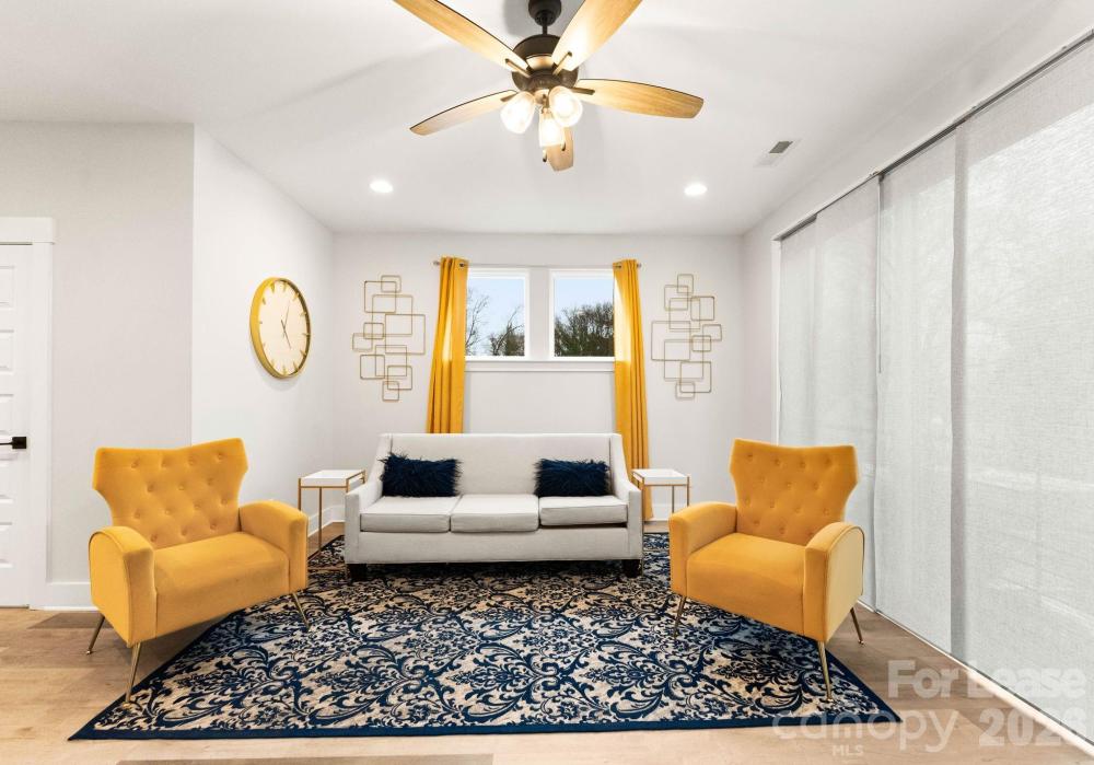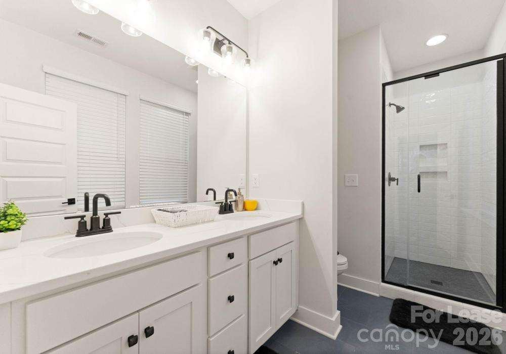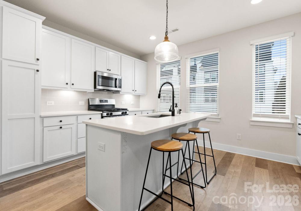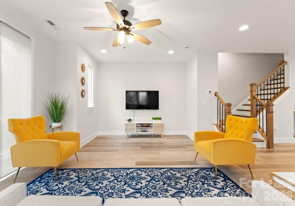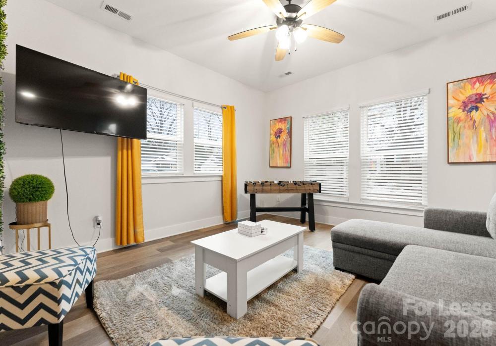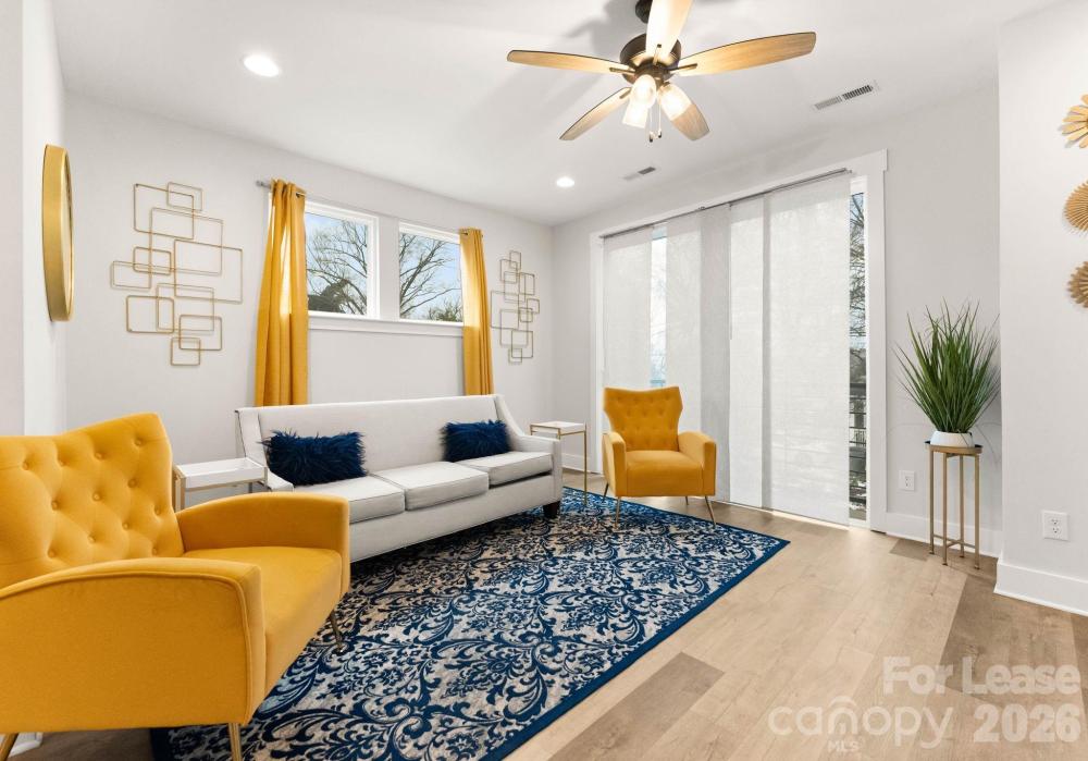 Now available and fully furnished with upgraded furnishings, this contemporary end-unit townhome in West End Towns offers turn-key living just minutes from Uptown Charlotte. The popular Sorrento plan spans approximately 1,951 square feet across four levels and features 2 bedrooms, 2 full baths, and 2 half baths, with a flexible entry-level space and powder room that is ideal for a home office, gym, or additional living area, plus an attached rear-entry one-car garage. The main living level showcases an open-concept layout with wide-plank flooring, abundant natural light, and a bright, modern kitchen featuring a large island with seating, white cabinetry, quartz countertops, tile backsplash, stainless appliances, and elevated finishes throughout. Upstairs, the bedroom level offers two well-appointed suites for privacy and comfort, including a spacious primary with walk-in closet and a beautifully finished bath. The top floor provides a generous recreation room that opens to a private rooftop terrace—perfect for entertaining, relaxing, or enjoying open-sky views—creating a rare indoor/outdoor lifestyle component in an urban townhome setting. West End Towns is ideally positioned less than two miles from Uptown with convenient access to I-77 and I-277 and close proximity to Charlotte’s West Side destinations, greenway access, parks, breweries, restaurants, and the energy of South End and LoSo. Available immediately; fully furnished.