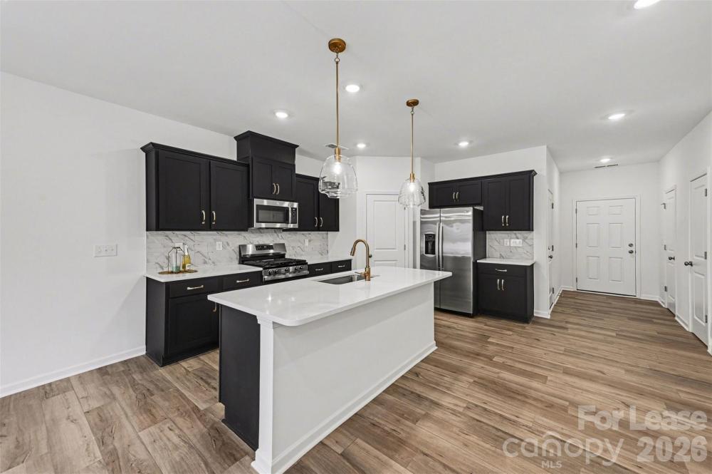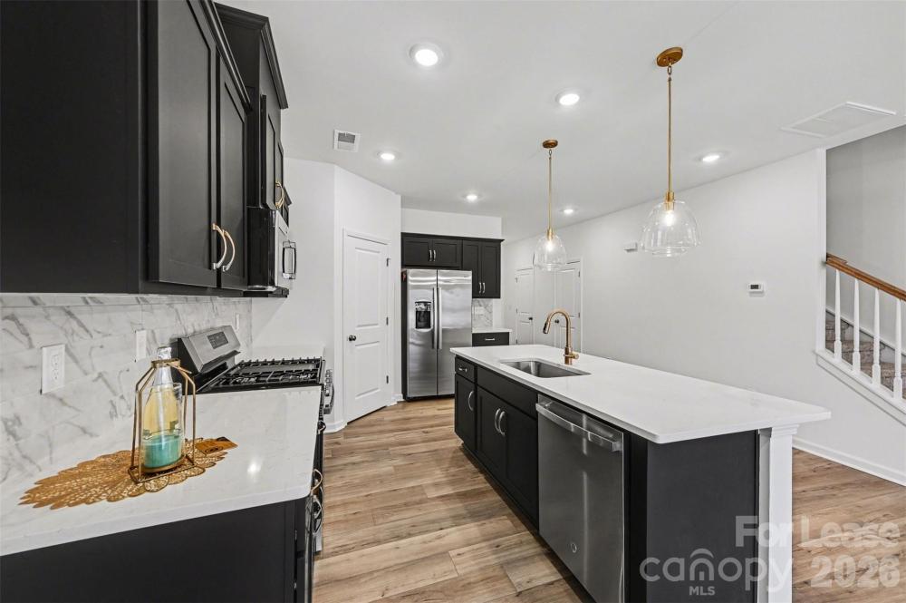 Welcome home to this stunning, brand-new, never-lived-in townhome in Concord's highly sought-after Piper Landing community! This pristine 3-bedroom, 2.5-bathroom rental offers the perfect blend of modern luxury, effortless living, and peaceful privacy. The true centerpiece of this home is the incredibly stylish kitchen that truly sets it apart from the rest, featuring striking black cabinetry perfectly accented by elegant gold hardware and beautiful countertops. The open-concept main floor flows seamlessly, creating an inviting space for cooking, relaxing, and entertaining. Step out the back door to find a premium lot that backs directly up to HOA property that will not be built on, providing a wonderful, tranquil setting for your evenings. Be the very first to enjoy this untouched space! The owners have added thoughtful post-closing updates to elevate the home, including a full suite of brand-new appliances and upgraded, modern lighting fixtures in multiple areas. Upstairs, you will find three generously sized bedrooms, including a spacious primary suite featuring ample closet space and a beautifully appointed en-suite bath. Please note: No pets permitted.