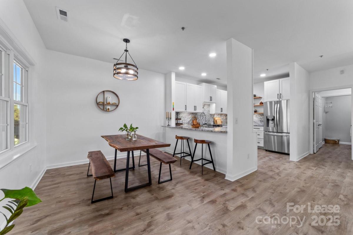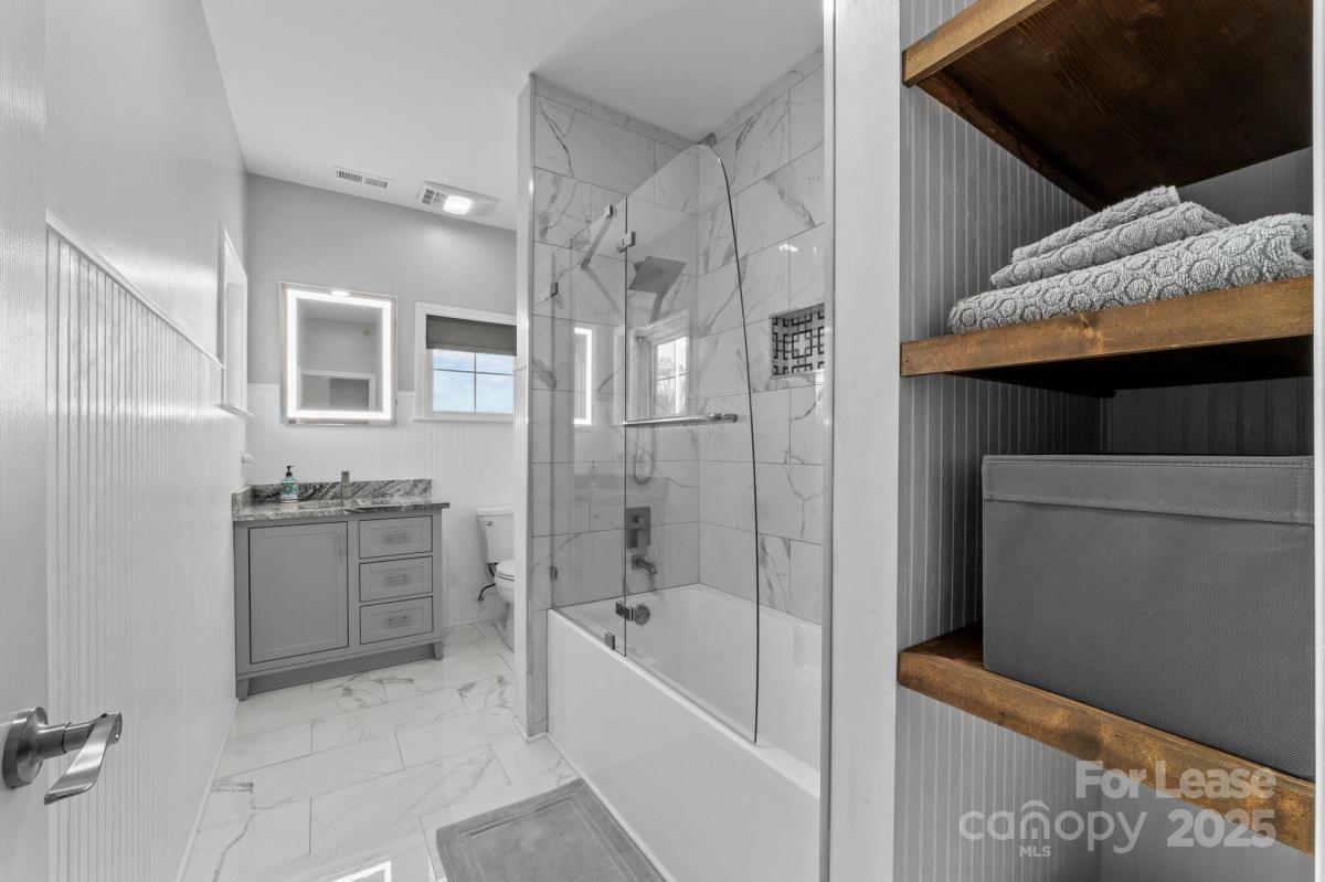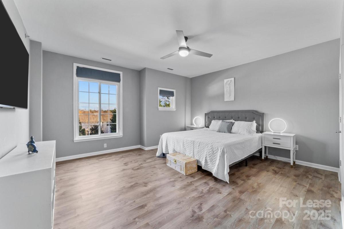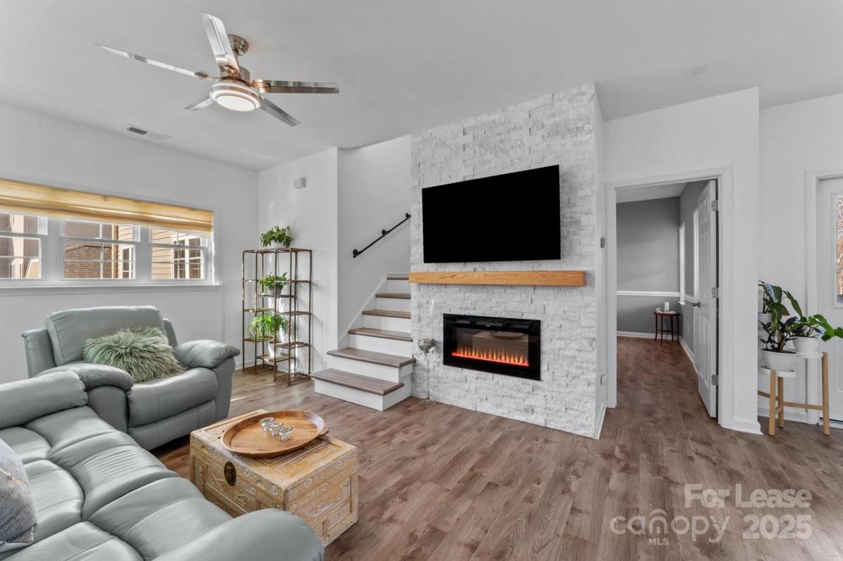 The first floor offers a front-load 1.5 car garage with a storage closet, shelves and epoxy floor. Up one flight of stairs, you'll find the main living area, which includes a recently updated kitchen with a high-end induction stove for chef-style cooking, all-new high-end appliances, and a Pinterest worthy walk-in pantry. This level also includes the laundry area with LG washer and dryer and one of the bedrooms, plus a great balcony that overlooks peaceful wooded surroundings. The home features high-quality luxury vinyl plank (LVP) flooring throughout—no carpet! On the top level, the primary suite and additional bedroom. The primary bath is designed for luxury with a double sink vanity, quartz countertops, LED backlit mirrors, and a marble walk-in shower. The hall bathroom offers a convenient tub/shower combo. Plus, enjoy access to the community pool, Greenway, close to shopping, etc.