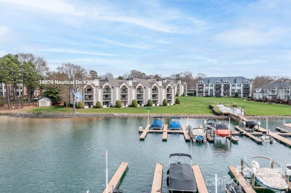 ABSOLUTELY STUNNING views from this lake front condo in Admirals Quarters. This fully furnished 2 bdrm , 2 bath condo has been fully updated, kitchen includes white cabinets, semi-exotic granite counters & SS appliances, pantry & laundry closet. Lovely dining room that leads to a second deck w/lake views Lg. family room that overlooks the lake w/stone fireplace & beautiful deck to enjoy your new views. Lovely primary bedroom w/lake views & door to the deck, king size bed, TV & updated bath w/oversized tile shower, granite counter tops & walk-in closet. Bedrm 2 has 2 day beds & a TV. The hall bath updated w/granite counters, tile floors & bath surround, toilet & light fixture. The amenities include a club house w/gym, outdoor pool, tennis courts, pond, greenspace & beach. Located only minutes to waterfront dining, shopping, entertainment & greenway. Easy access to I-77, Uptown & Airport. Only 3 hours to the beach and 2 hours from the mountains! All utilities are included. Condo is available for occupancy on 05/01/26.
