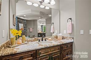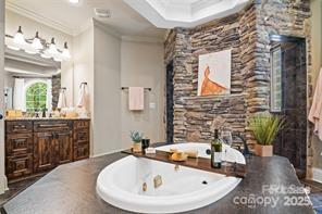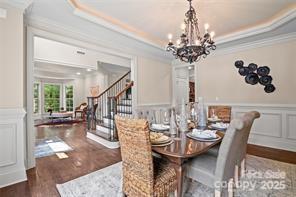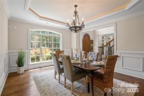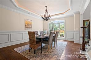 Feel like you are living in a mountain lodge in this executive style home at the end of a cul-de-sac. This unique home is designed perfectly for entertaining with all the rooms working together for large gatherings or intimate parties. Boasting 4 bedroom, 3.5 bath plus bonus room, the home features beautiful hand scrapped hardwood floors on the main and some of the upstairs with heavy molding throughout. Lovely living room w/bay window & heavy moldings. The office features a custom built-in & heavy molding. The family room that is the heart of the home boast an incredible stone fireplace, coffered ceilings with lighting, custom antler chandelier and heavy molding. The large entertainers dining room features heavy molding & tray ceiling. Massive chefs kitchen w/5 burner gas cooktop, 2 ovens, huge island w/seating, walk-in pantry, beautiful granite counters, under cabinet lighting and range hood. The sunroom can be used for eat-in dining, play area for the kids, sitting area or peaceful reading nook. A nice powder room and 2 closets for storage round out the first floor. Upstairs is an amazing primary bedroom with a beautiful reading nook that has seasonal lake views! The massive walk-in closet features built-in mirrors, crystal chandelier & attic storage. The spa like primary bathroom has a massive jetted tub and walk-around shower, separate, under mount sinks with granite counters, large linen closet & water closet. 3 big secondary bedrooms & 1 has an on-suite bath. There is also a hall bathroom with dual under mount sinks and granite. Upstairs also features the laundry room. The huge bonus room has 2 TV's & projector! There is a massive 4 car garage with hanging storage racks, built in cabinets, exercise mat and a mini-split so you can use the garage year round! The home has amazing privacy - you cannot see neighbors from the front porch, backyard or driveway most of the year. The lovely backyard has a two tiered patio, metal fence and bench. The location cannot be beat - only minutes to Birkdale Village, shopping, dining & entertainment. Blythe Landing Boat Launch is only moments away. This home has easy Access to I-77, Uptown Charlotte & the airport. In under 2 hours you can be in the mountains or 3.5 hours to the beach. One dog conditionally allowed - No CATS.