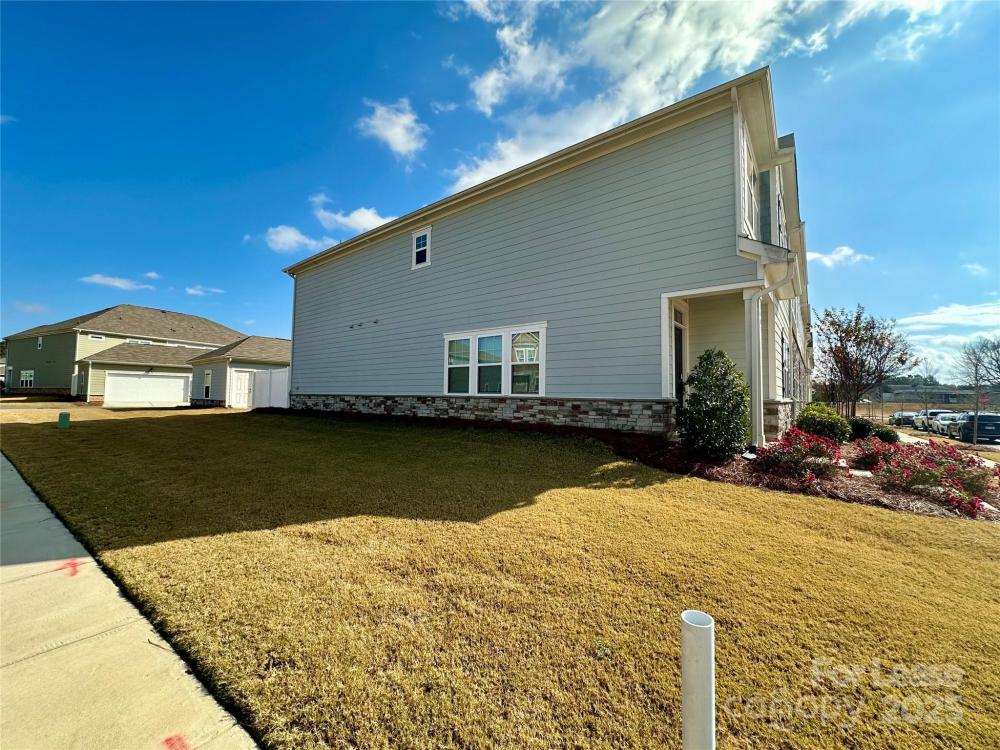 End unit. Big GREEN BELT in front house. Dual Owner's Suites with main floor laundry! Open floor plan with large kitchen complete with pull out trash bin and USB port!! This home has it all including a two-car detached garage and a COURTYARD with privacy panel! Lawncare and trash removal included. Upgrade French door Refrigerator and washer/dryer included. Walking distance to shopping and dinning. Enjoy this maintenance free living life style!!