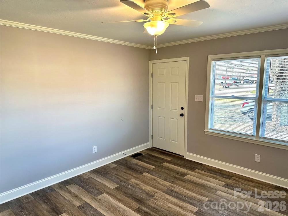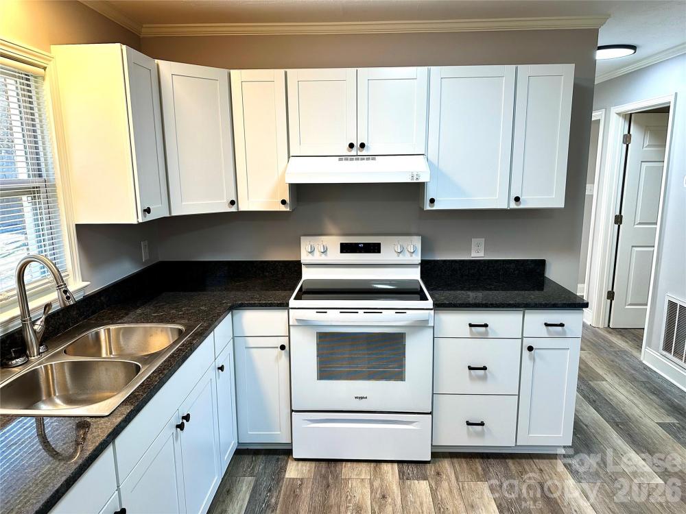 Experience modern comfort in this beautifully updated 3-bedroom, 1-bathroom home located in the heart of Mooresville. Offering 1,000 sq. ft. of fresh living space, this property combines stylish finishes with a location that puts local dining, shopping, and the amenities of Lake Norman just minutes from your door. Gorgeous, durable Luxury Vinyl Plank (LVP) flooring flows throughout the entire home—completely carpet-free for easy maintenance. Features sleek white shaker-style cabinetry, new countertops, a dedicated dining area, and a brand-new electric range. Every wall has been professionally painted in a neutral tone to complement any decor style. Bathroom is designed with all-new fixtures, an oversized vanity for extra storage, and a modern stand-up shower. The living room and all three bedrooms are equipped with new ceiling fan light fixtures. Brand-new window blinds are installed throughout for immediate privacy. Convenient washer and electric dryer hook-ups located within the bathroom area. Enjoy a nice-sized rear yard. Absolutely no pets considered. No smoking or vaping permitted inside the property. Resident responsible for all utilities. This home is ready for immediate move-in.