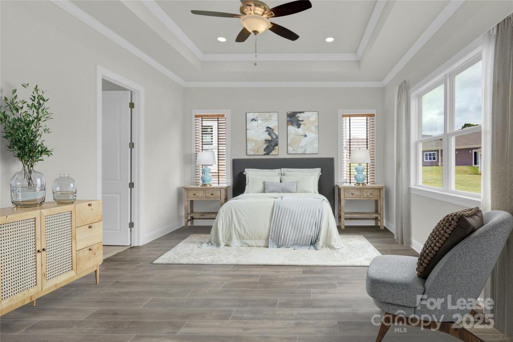 Desirable Wooded Lot! Welcome to this spacious and inviting 3-bedroom ranch-style home. With wide hallways and soaring 10' ceilings this open floor plan home really makes for an airy and open ambiance. The living room opens to the dining and kitchen area perfect for hosting family gatherings and dinner parties. The kitchen features a large island, walk-in pantry and ample cabinet storage. The primary bedroom offers a spacious layout, tray ceiling, and a walk-in closet. The primary bath has an oversized walk-in shower and ample vanity space. Two additional bedrooms and a bathroom offer versatility, whether you need guest rooms, a home office or a hobby room. Two Car garage. Kitchen appliances are included. Enjoy carefree living with Lawn Maintenance is included.