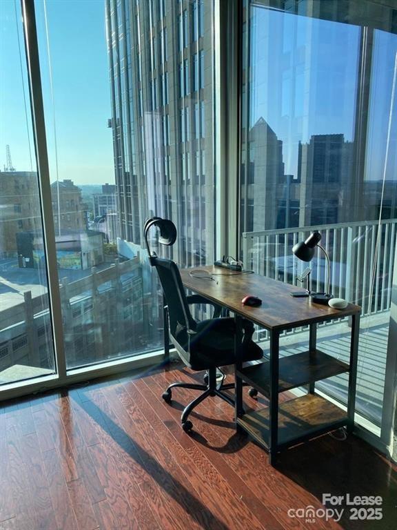 Beautiful 1 BR, 1 BA with dark hardwoods in the living areas. Granite and SS kitchen. Stack washer/dryer included. One of the few plans in the building with private closed off bedroom. Walk in closet. Computer niche. Building features include 24 hour concierge, newly renovated lobby as well as club room, billiards, state of the art fitness center, pool and grilling areas. Google fiber included. Available 2/1. Tenants are in the process of moving. Pictures are from previous tenant.