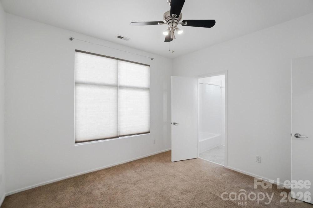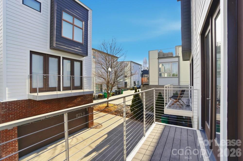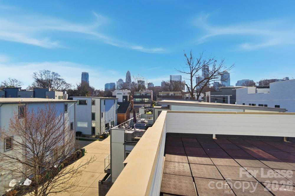 1st Month Rent Free! Discover this stunning three-story modern townhome featuring a private rooftop terrace and a spacious two-car garage. The first floor offers a versatile bedroom or office space, perfect for guests or remote work. The main level showcases an open-concept layout with gleaming hardwood floors, a large balcony, and a modern kitchen complete with stainless steel appliances and quartz countertops. Upstairs, you’ll find two generous primary suites, each with its own full bath and walk-in closet. Enjoy breathtaking skyline views from the rooftop terrace, ideal for relaxing or entertaining. Conveniently located within walking distance of local restaurants, Bank of America Stadium, Truist Field, and Frazier Park.