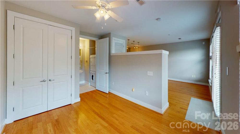 This stunning uptown condo has it all in a great part of Uptown. Just steps from the elevator, you are greeted with tons of natural light pouring in the bank of windows. The large kitchen is great for the home cook with lots of cabinets space and a bar top for entertaining. All the appliances are included (w/d too!) The large living room is a great hang out space and the private balcony has park views to the left and Uptown views from the right. The bedroom is tucked away and private yet open so the condo feels bigger than it is. The bathroom has plenty of room for storage and has the laundry center. All of this and more in a great building that features a courtyard and secure entry. The parking garage is secure as well and the parking space is assigned. Less than 3/4 of a mile to Bank of America Stadium for Panther's games, Charlotte FC game and great concerts! A mere seconds to everything Uptown has to offer as well as just minutes to all the great restaurants and breweries in Freemore West. You can't beat a huge park with walking trails right next door! Take a look today!